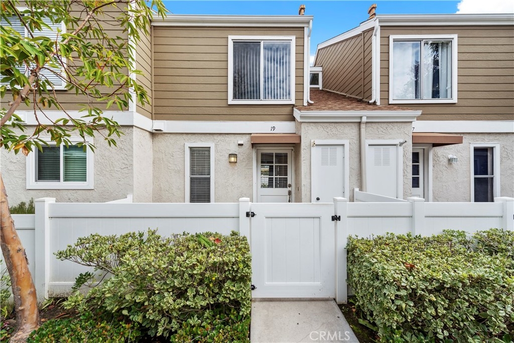 Welcome home to the Morningstar community in the heart of Aliso Viejo. Offering 2 bedrooms and 1 and a half baths this highly desired layout has been well maintained. From the moment you enter the property you will notice the luxury vinyl flooring that wraps the stairs and continues onward onto the upper level. Both bedrooms are located upstairs or have the option to turn one room into an office, den or workout area. The primary bedroom is generously sized with an attached balcony. Offering two lower level outdoor spaces behind your main gate you will see a front patio, and a back patio both of which are enclosed. The back patio is wrapped in a newer white vinyl fencing, while the front has space for bikes and other items. A nicely appointed kitchen has soft close cabinets, a newer stackable washer and dryer and gorgeous appliances. The kitchen opens to the living room through a counter top breakfast bar or eating area. The community is surrounded by lush and maturate landscaping and provides the feeling of comfort and relaxation. The community offers a pool, spa, tennis courts and plenty of walking paths for kids and animals. Shopping, dinning, freeway and toll road access are in close proximity to your new home. Come enjoy one of Aliso Viejo´s most sought after neighborhoods. Welcome home to 19 Bentwood.