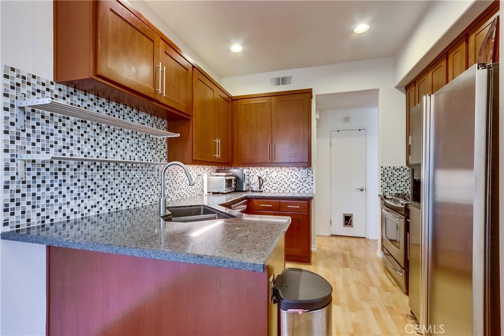 LOCATION, LOCATION, LOCATION! Spacious upgraded luxury town home located in the heart of Aliso Viejo. Absolutely Turn Key. Vaulted ceilings in living room and bedrooms and plenty of windows make this beautiful home light and bright. Enter into the spacious living room with fire place and dining area and access via sliders to the wonderful patio. In the tastefully remodeled Eat In Kitchen you will find hardwood cherry cabinets, quartz counter tops with back splash and stainless steel appliances. The downstairs Powder Room has been upgraded, ready for your guests to enjoy. Hook up for washer/dryer located in the 2 car attached direct access garage with Epoxy Flooring. Hardwood stairs lead you up to the spacious Master Suite with vaulted ceilings, skylight, walk in closet and sliders to a balcony. The Master Bath provides a beautiful custom real stone walk-in shower and quartz counter tops at the double sinks. Upstairs also has a well sized secondary bedroom with a full bathroom. The upstairs nook in the hallway has a skylight and can be used as an office/study space. Outside is an amazingly large patio, perfect for relaxing and chilling with friends. Very private and not overlooked. Walk to shops, restaurants and movie theater. Toll road close by.