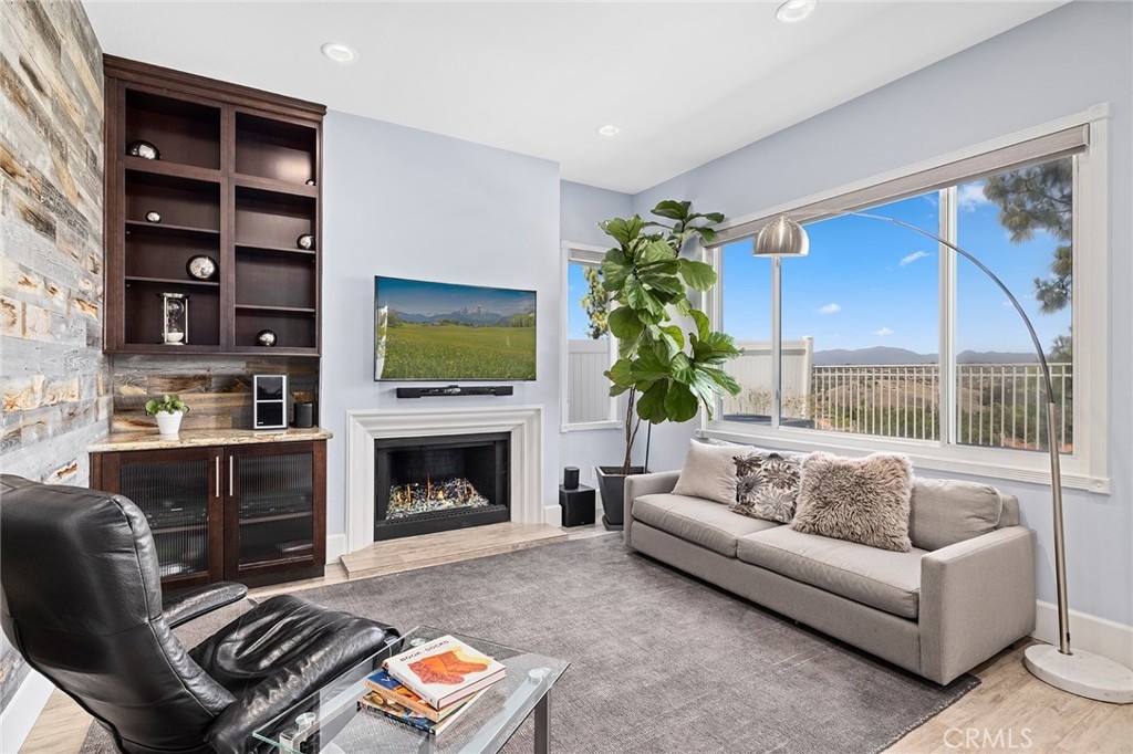 Enjoy the rewarding combination of a mature, established neighborhood and a desirable residence with today’s fashionable, on-trend upgrades at Tivoli in Aliso Viejo. An end-of-street homesite with extra guest parking reveals an entertainer’s backyard with a granite bar and scenic valley, hill, evening-light and Saddleback Mountain views. Indoors, stylish living is embellished with a travertine accent wall in the foyer, wood and wood-inspired porcelain flooring, fresh interior paint, 4 spacious bedrooms and 2.5 fully remodeled baths with chic fixtures. A large living room and a separate family room with fireplace provide ideal settings for social gatherings, and the open-concept kitchen boasts granite countertops, a wine refrigerator, a premium Bosch dishwasher and a matching Bosch micro-oven combination. Reclaimed wood accent walls, recessed lighting, Hunter Douglas traditional and motorized window shades, custom California Closet organizers, and new windows with U-factor glazing compliant with California’s energy-efficiency rules are featured. A custom barn door at the bathroom in the primary suite, a new garage door, new wood and iron perimeter fencing, and a new water heater lend appreciated style and value. Tivoli is introduced by a beautiful entry fountain and is home to a recreation center with pool and spa. Soka University, miles of trails, award-winning schools, picturesque open space, and abundant shopping and dining destinations are moments from home.