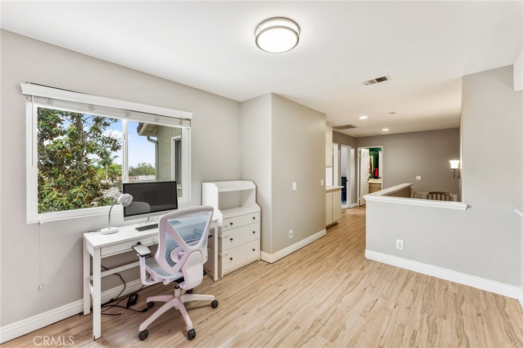 Welcome to this beautifully upgraded 3-bedroom + loft home, nestled in the desirable Hamptons at Aliso Viejo community. Located on a peaceful cul-de-sac, this detached end unit offers privacy, charm, and a spacious floor plan designed for modern living. Step inside to soaring ceilings, oversized windows, elegant wainscoting, and durable engineered wood flooring throughout the main level. The home has also been repiped. The gourmet kitchen features granite countertops, rich wood cabinetry, stainless steel appliances, and direct access to the attached two-car garage with epoxy-coated floors and overhead storage. The bright and airy living and dining spaces flow seamlessly to the large wrap-around backyard—perfect for entertaining or relaxing outdoors with friends and family. Upstairs, the expansive Primary Suite is a true retreat, complete with vaulted ceilings, abundant natural light, and a stunning remodeled bathroom with dual sinks, a walk-in shower, and a custom walk-in closet system. Two additional spacious bedrooms share a full hall bathroom, and the sunny loft with glass safety enclosure offers the ideal space for a home office, media room, or playroom. The Hamptons community offers resort-style amenities, including a pool with cabanas, outdoor fireplace, BBQ area, tot lot, and a charming Little Free Library. Conveniently located near top-rated schools, popular shopping and dining, and just minutes from the toll road—this is the home you’ve been waiting for.