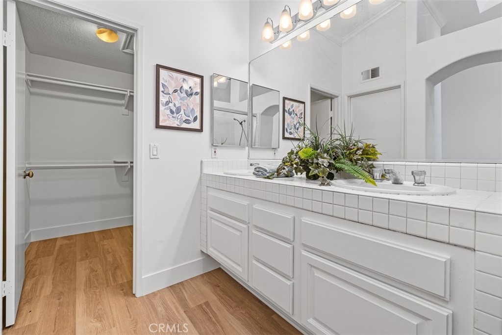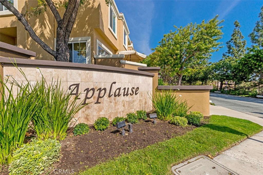 Great opportunity to own this lovely 2 bedroom, 2.5 bath home in the desirable Applause community. It has new carpeting downstairs and wood style flooring upstairs. Enter through the front patio to the open living room and dining area with soaring ceilings. The kitchen has a convenient breakfast nook and new appliances. Upstairs is the spacious primary bedroom, with balcony, double sink vanity and large walk in closet. The generous secondary bedroom has an en-suite bath. Between the bedrooms is a loft area that would work well for a desk or workout equipment. The home is freshly painted throughout. The two car garage has convenient direct access into the home. Notice all the additional parking directly across the street, unheard of in most condo neighborhoods. Applause has a community pool, spa, barbecue area and low association fees. It is located close to a variety of amenities, including shopping centers, restaurants, cafes, and parks.