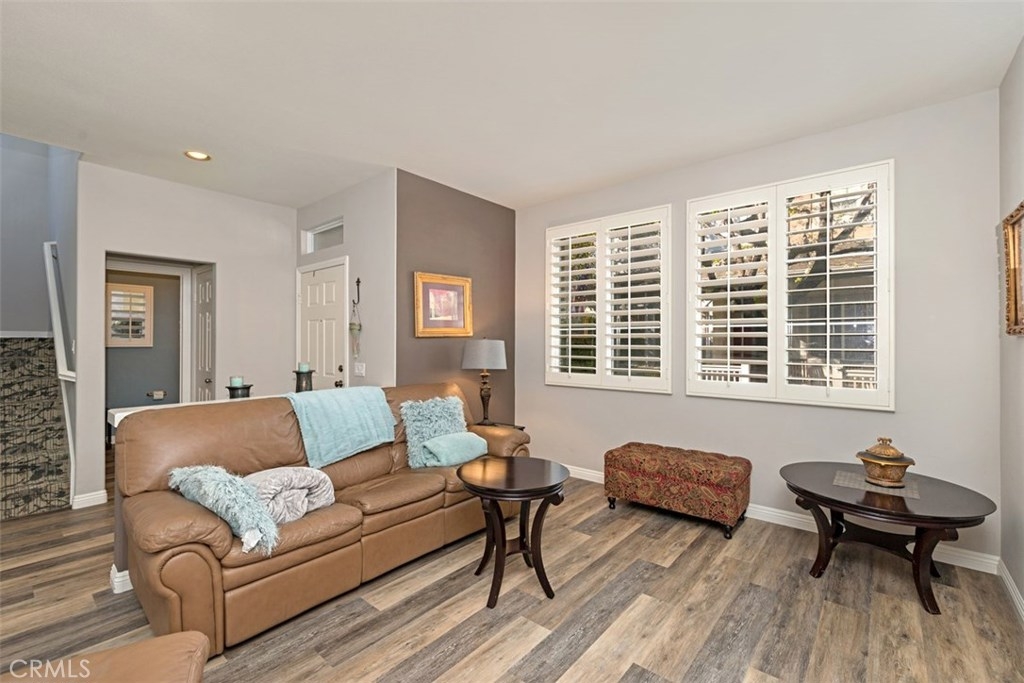 Absolutely gorgeous home located in the heart of Aliso Viejo! Terrific floor plan with a spacious downstairs area, a huge kitchen with tons of cabinet space and ample counter space, a separate dining room, a large master bedroom with walk in closet, and large secondary bedrooms with a jack and jill bathroom. This home is highly upgraded with brand new re-claimed coastal waterproof wood flooring downstairs, plantation shutters throughout, upgraded baseboards throughout and wood molding up staircase, built in cabinetry in living room, and white kitchen cabinets. There is beautiful outdoor space complete with a flagstone patio with brick accents. This cape cod style home has a front patio sitting area in addition to the closed back patio. The laundry is found in the upstairs hallway. The community has an association pool and spa and you are within walking distance to highly rated schools. The property is within a mile of the Aliso Viejo Town Center where you can find restaurants, a movie theater, and shopping and within ten minutes of either Laguna Beach, Irvine, or Newport Beach! This floor plan rarely comes on the market and this is a wonderful opportunity to come and see why it is so desirable!