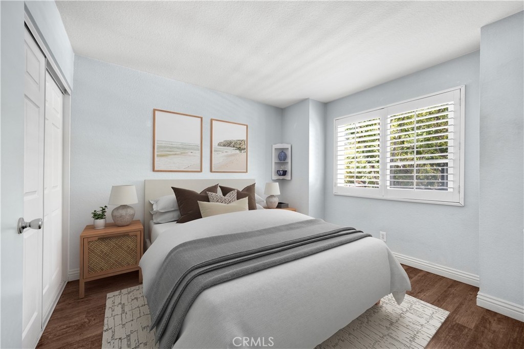 Step into this beautifully updated residence in the heart of Aliso Viejo, where comfort meets sophistication. Featuring 3 spacious bedrooms, 2.5 baths, and a 2-car attached garage, this home is designed for modern living and effortless entertaining. The main level showcases laminate flooring throughout, soaring cathedral ceilings in the family roo, and a cozy wood burning fireplace. New sliding glass doors open to a charming patio with pavers, a vinyl patio cover, and a built-in BBQ-perfect for weekend gatherings or quiet evenings under the stars. All windows have been replaced with the vinyl. The open kitchen boasts crisp white cabinetry and flows seamlessly into the adjacent dining room, also with new sliders for easy indoor-outdoor access. A convenient powder room completes the downstairs layout. Upstairs, the primary suite offers vaulted ceilings, plantation shutters, ceiling fan, custom closets, and spa inspired bathroom upgrades that create a serene retreat. Secondary bedrooms feature matching laminate flooring, plantation shutters, updated closets. The remodeled secondary bathroom adds a touch of luxury for guests or family. This home has been re-piped. Refrigerator and washer/ dryer are included. Enjoy Resort- Style amenities including a lap pool, jacuzzi, kids pool, gym, clubhouse, tennis courts, and lush greenbelt areas. Blue-ribbon schools! Ideally located near shopping, toll roads, golf course, hiking trails, and just minutes from iconic Laguna Beach. No Mello Roos and Low property taxes. This is the one you’ve been waiting for-schedule your showing today!