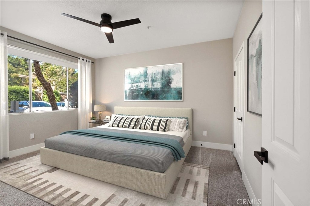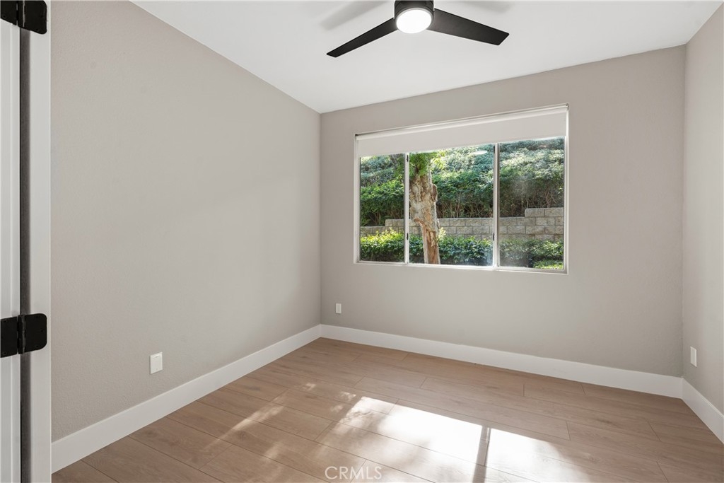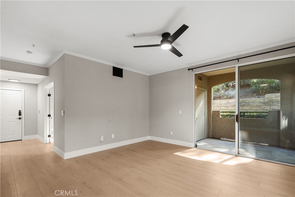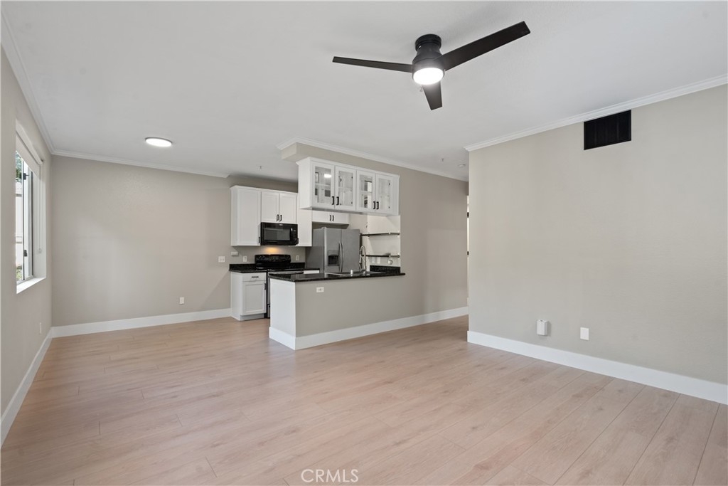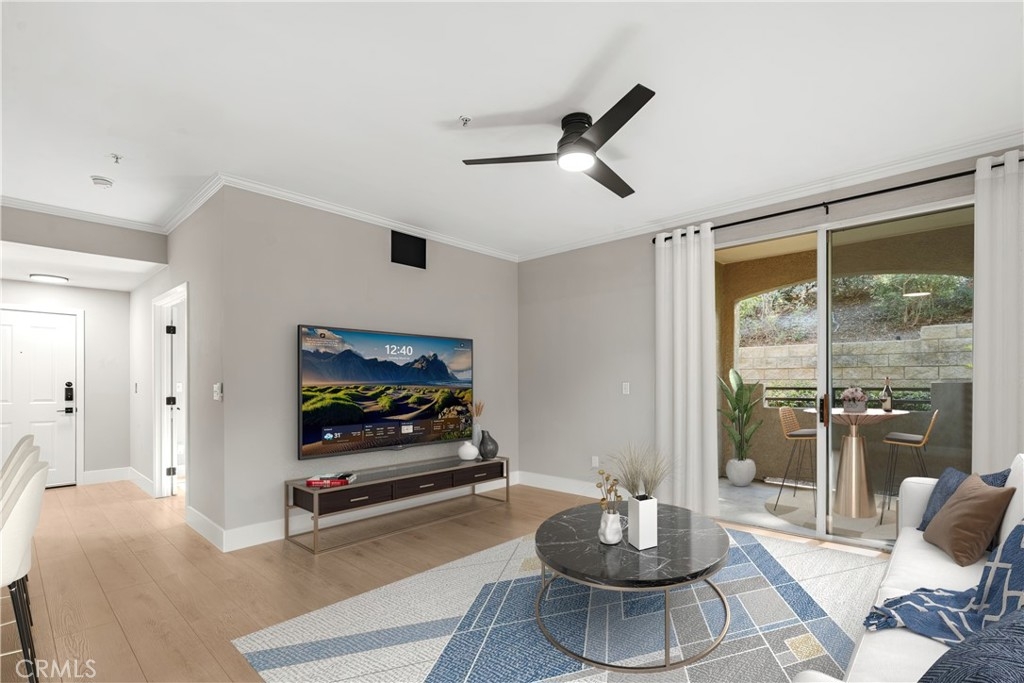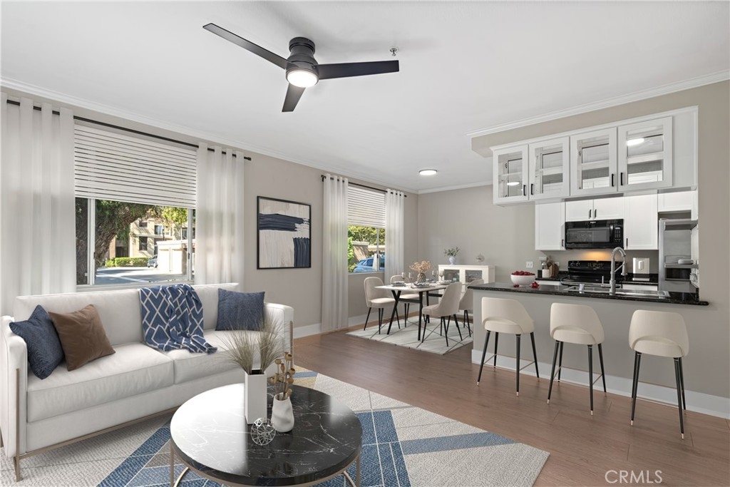 Charming Upgraded Ground-Level Unit with Garage! Discover the perfect blend of comfort and style in this upgraded ground-level unit, featuring no stairs and a convenient one-car garage. The modern kitchen boasts shaker-style cabinets, sleek stainless steel appliances, and elegant granite countertops, making it a culinary delight. Enjoy the inviting ambiance created by upgraded flooring, baseboards, and crown molding throughout most of the home. The spacious main bedroom offers a generous walk-in closet, while the second bedroom provides flexibility—please note it does not include a wardrobe closet. With large windows flooding the space with natural light, this home feels bright and airy. Step outside to your private patio, complete with a storage closet for added convenience. Partial repiped (new plumbing) HOA managed. The laundry closet can fit a full-size side by side washer and dryer, ensuring ease of use. Located in the well-designed Canyon Point community, residents can take advantage of the pool, spa, and fitness center. This unit is conveniently situated near schools, parks, entertainment options, and a variety of dining experiences, from casual to fine. Plus, enjoy easy access to the freeway and toll road for effortless commuting. Don’t miss out on this gem—schedule a viewing today!