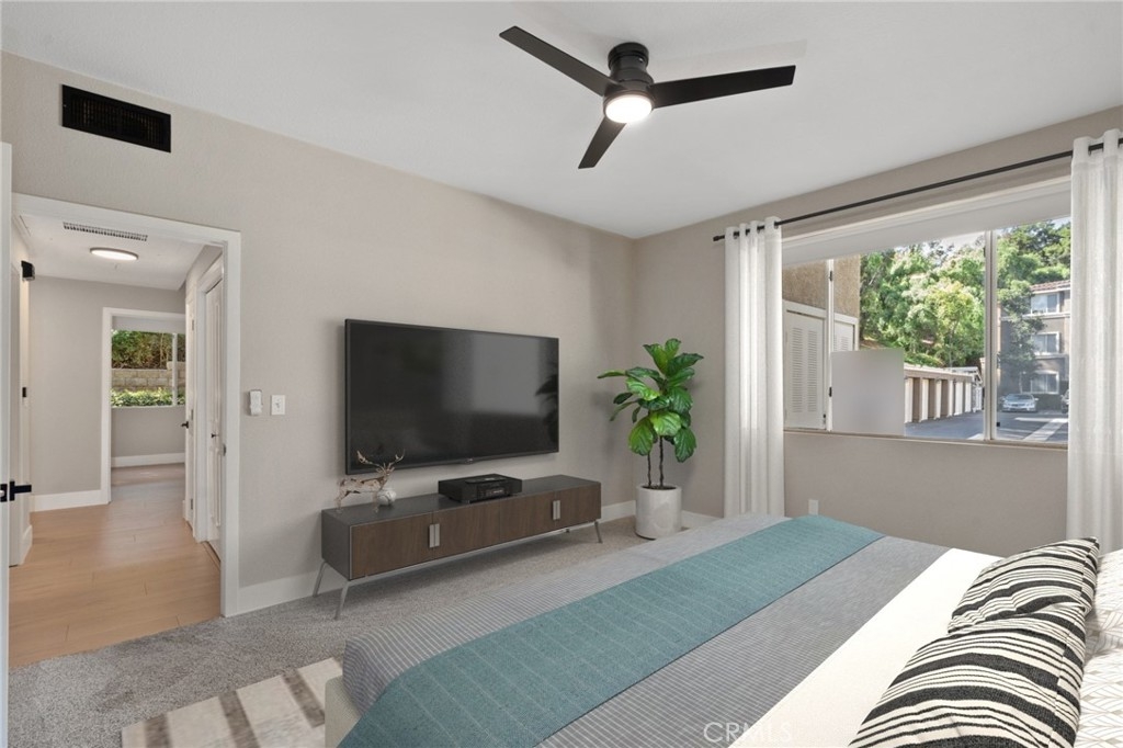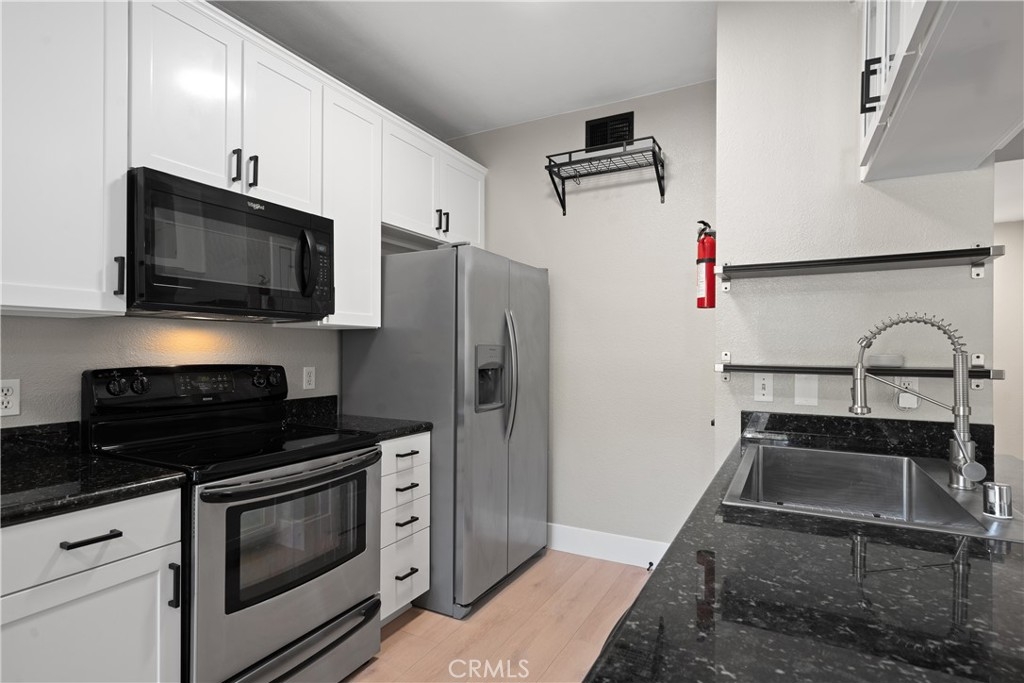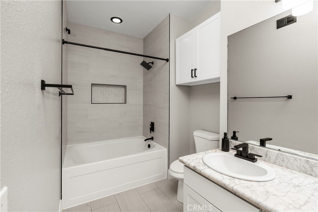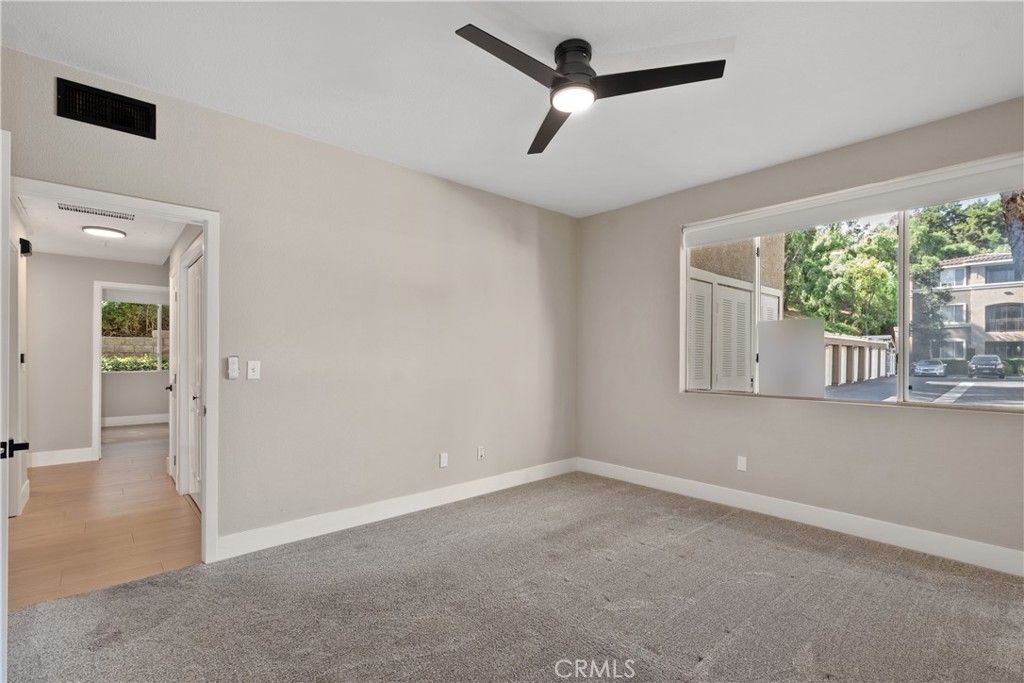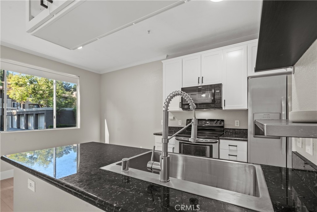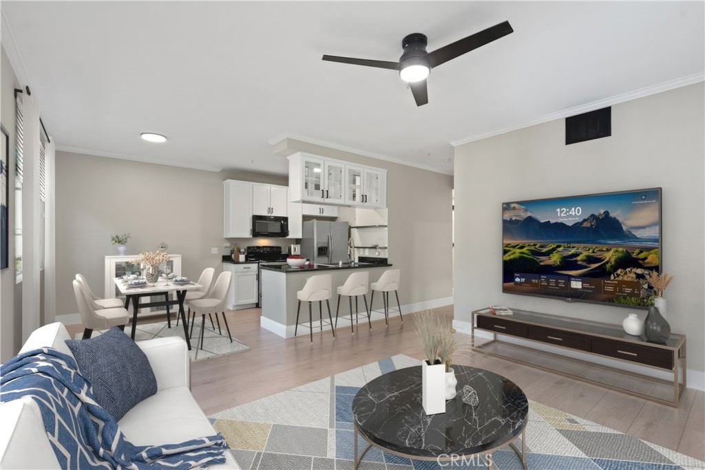 Charming Upgraded Ground-Level Unit with Garage! Discover the perfect blend of comfort and style in this upgraded ground-level unit, featuring no stairs and a convenient one-car garage. The modern kitchen boasts shaker-style cabinets, sleek stainless steel appliances, and elegant granite countertops, making it a culinary delight. Enjoy the inviting ambiance created by upgraded flooring, baseboards, and crown molding throughout most of the home. The spacious main bedroom offers a generous walk-in closet, while the second bedroom provides flexibility—please note it does not include a wardrobe closet. With large windows flooding the space with natural light, this home feels bright and airy. Step outside to your private patio, complete with a storage closet for added convenience. Partial repiped (new plumbing) HOA managed. The laundry closet can fit a full-size side by side washer and dryer, ensuring ease of use. Located in the well-designed Canyon Point community, residents can take advantage of the pool, spa, and fitness center. This unit is conveniently situated near schools, parks, entertainment options, and a variety of dining experiences, from casual to fine. Plus, enjoy easy access to the freeway and toll road for effortless commuting. Don’t miss out on this gem—schedule a viewing today!