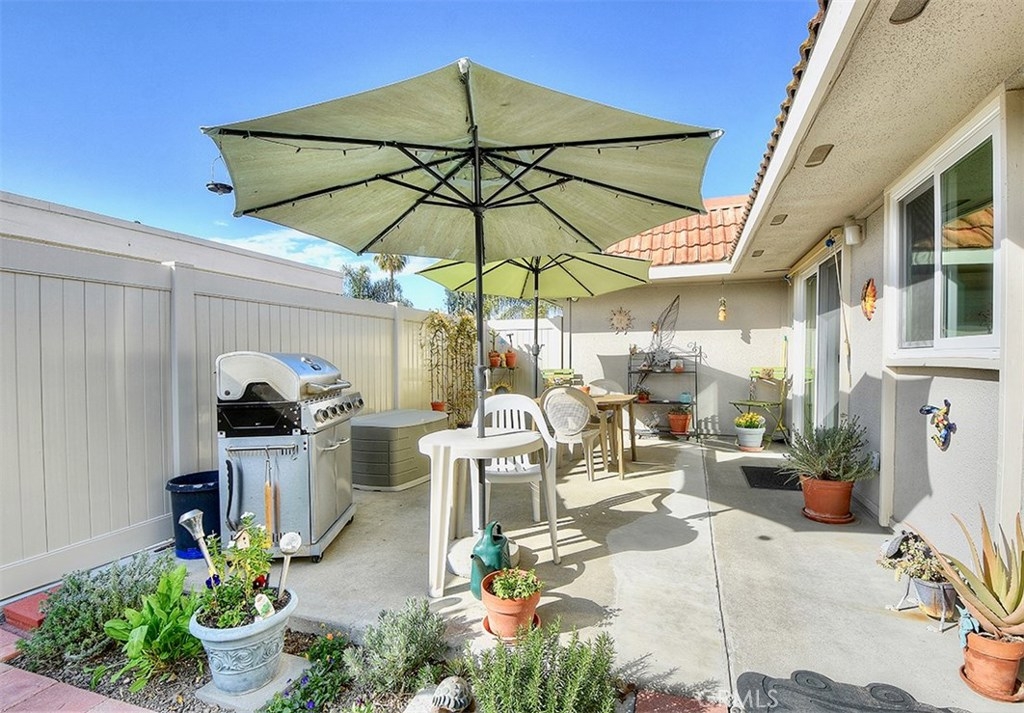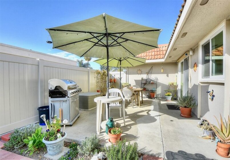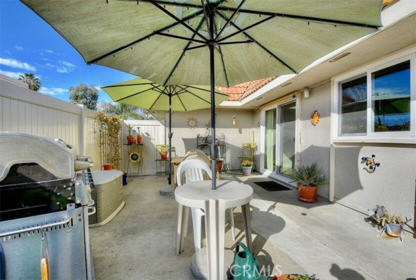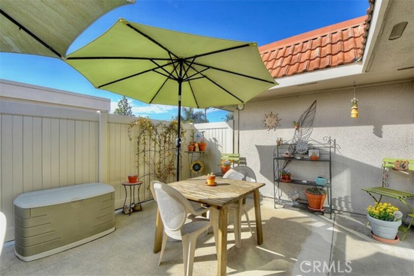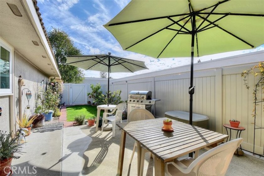 Nestled on a private lot, this lovely home shares only one common wall. Featuring 3 bedrooms and 2 bathrooms, remodeled kitchen, dual pane windows and more. Enjoy gardening outside on the large private patio or relax in the sun at the community pool. It is a perfect place to call home with low tax rate and no Mello-Roos.