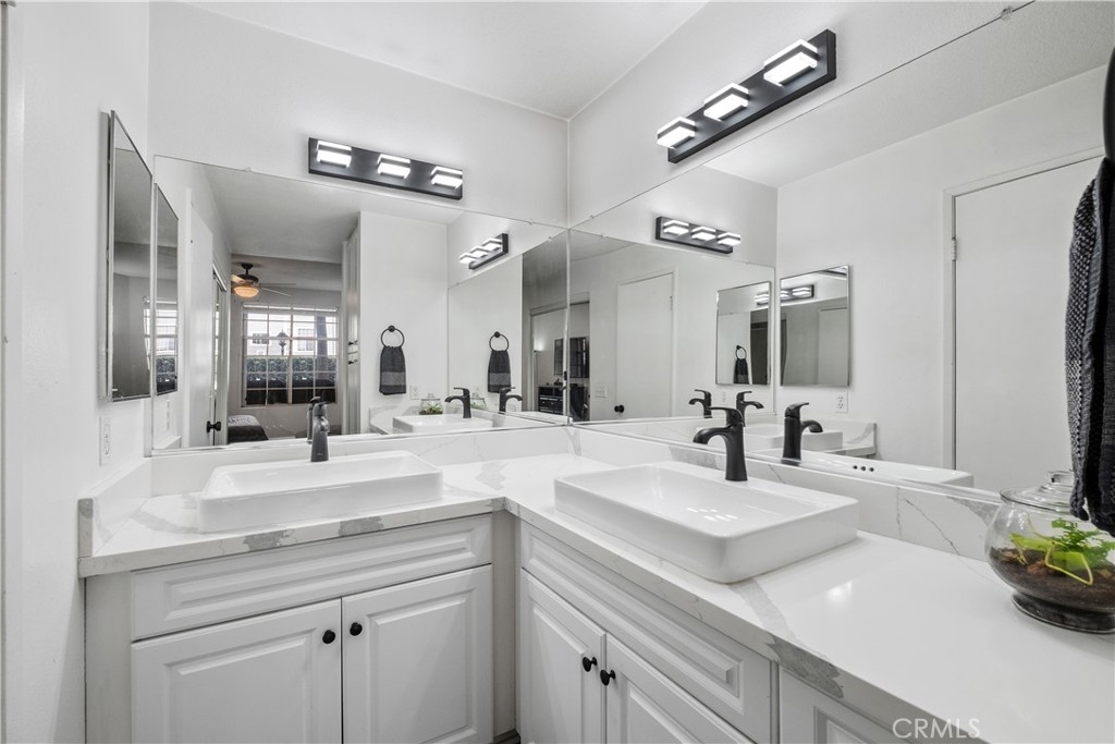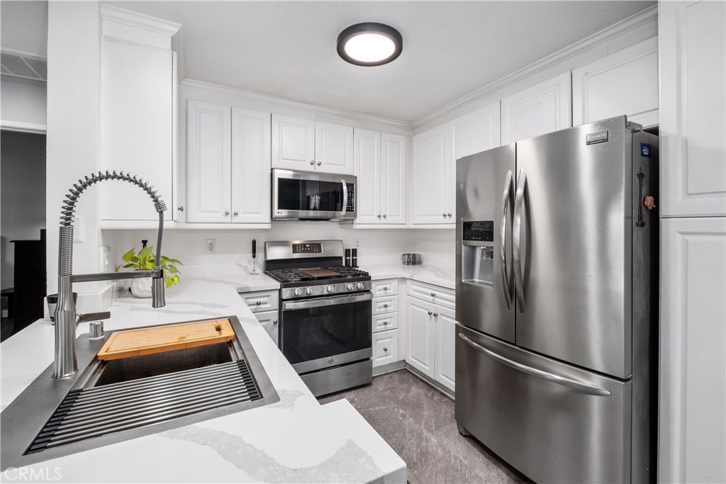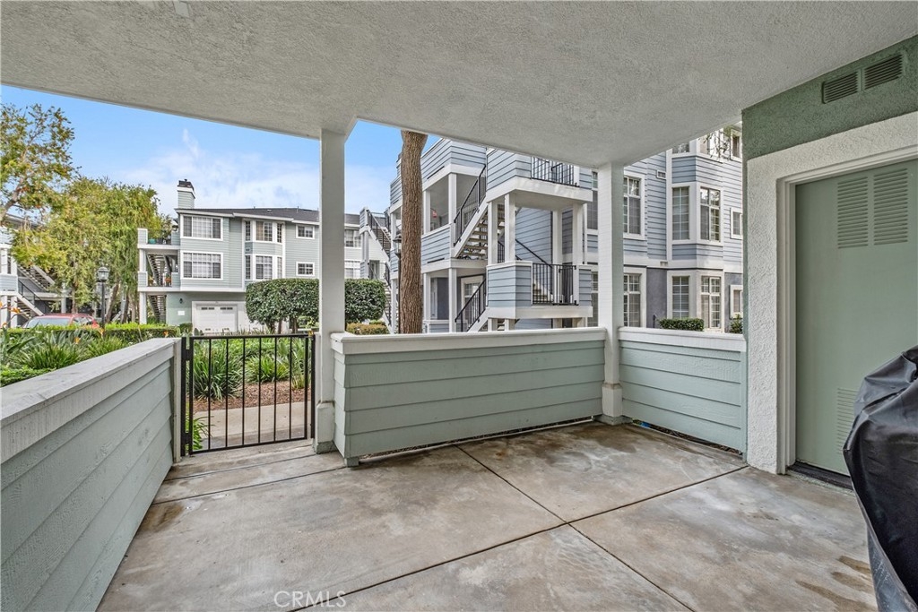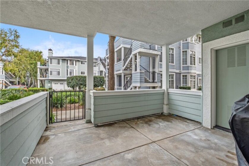 Welcome to Canyon Villas' best location—an exceptional single-level one-bedroom end unit just steps from the pool, spa, and fitness center in this highly sought-after gated community. This move-in-ready residence features an open floor plan with modern updates, highlighted by a stunning kitchen with upgraded quartz countertops, along with beautifully updated floors and a refreshed bathroom. The spacious bedroom offers a walk-in closet, while the bathroom includes dual sinks, adding both style and everyday convenience. A private laundry room conveniently located in the patio closet further enhances functionality. Step outside to your private patio—ideal for morning coffee, evening relaxation, or effortless indoor-outdoor living—just moments from the resort-style amenities. The shared garage is close by, adding to the home’s convenience. Ideally located near toll roads, the I-5 freeway, shopping, dining, entertainment, and top-rated schools, this home blends comfort, accessibility, and lifestyle. A rare opportunity to own one of the most desirable single-level units in Aliso Viejo!