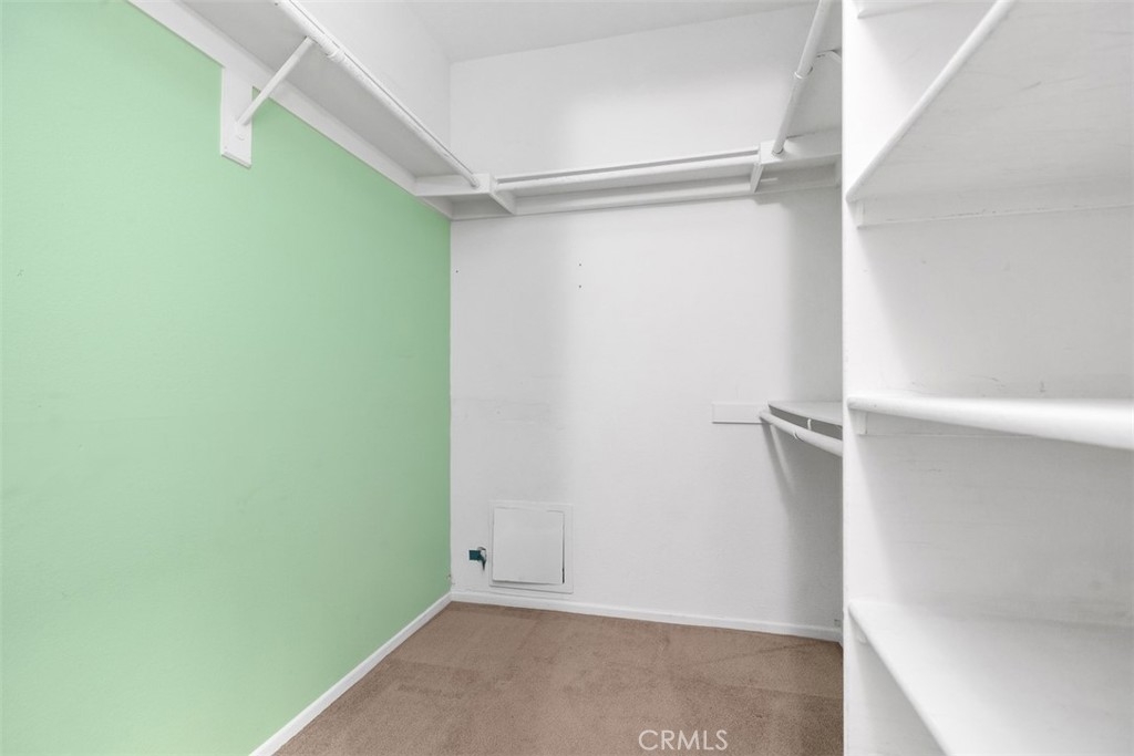 Welcome to the highly desirable Canyon Villas community in Aliso Viejo. This exceptional upper-level residence offers privacy with no one above, soaring high ceilings, and an abundance of natural light that creates a bright and airy living environment. Offering approximately 1,122 sq ft of living space, the thoughtfully designed floor plan features two spacious en-suite bedrooms, each with oversized walk-in closets and additional built-in storage, while the primary suite also includes an extra standard closet. A mirrored closet in the dining area provides even more functional storage. Enjoy comfortable, open living spaces that flow seamlessly to a private balcony, complete with laundry area. The property includes a one-car garage along with an additional assigned parking space for added convenience. Residents enjoy resort-style amenities including pool, spa, fitness center, and clubhouse. Ideally located near shopping, dining, parks, and major freeways, this home offers the perfect blend of comfort, convenience, and lifestyle. A rare opportunity to own a bright, upper-level unit with exceptional storage and layout.