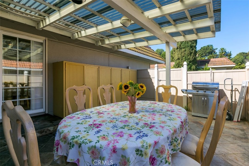 Opportunity Awaits the buyer of this Single Level home which shares just one common wall. Spacious open plan with Living area, with cohesive Living Room, Dining and Bright Kitchen. Tons of granite counter space. Sliders off kitchen to one of the largest vinyl-fenced enclosed patios in the community - perfect for outdoor entertaining with extra storage. Freshly painted and newly carpeted Bedrooms. Full size indoor Laundry area with additional storage. Central Air conditioning. Fabulous location within the community with many lush greenbelt areas and just a short distance to the Pool. Large detached Two Car Garage. Low Tax Rate and No Mello Roos. Community features Swimming Pool, BBQ area, tennis courts and play ground areas.
