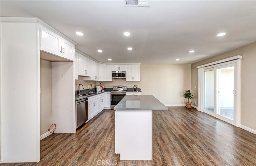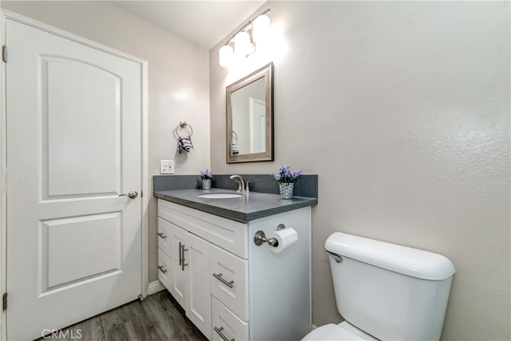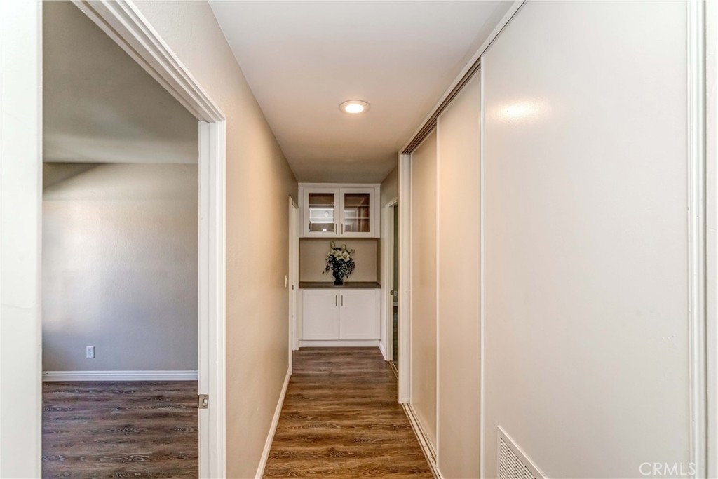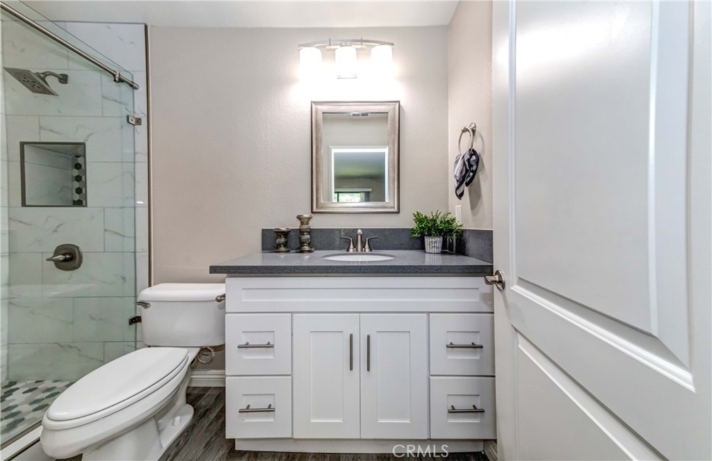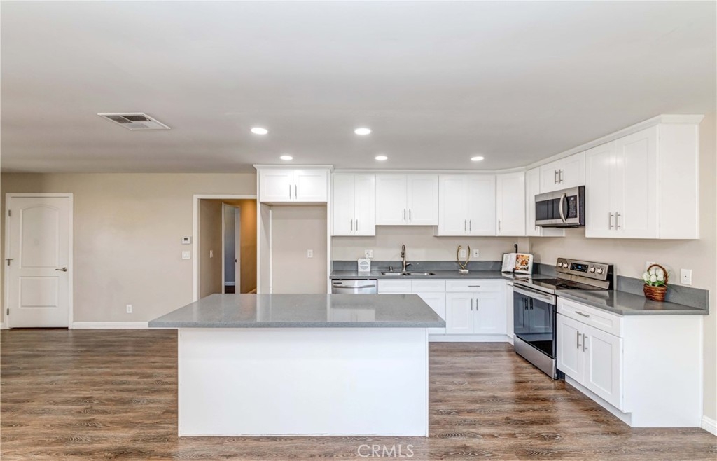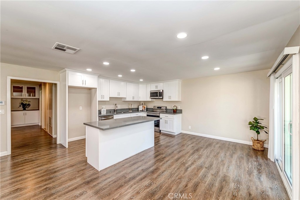 Ready to move in, single-story townhome with spacious, open floor plan. Remodeled just a couple years ago with completely new HVAC system. Three bedrooms and two full baths. Kitchen and bathrooms have been upgraded with quartz countertops and cabinets. Dining area opens up to a cozy family room, making for a great entertaining space. Neutral colors throughout with beautiful laminate flooring. Enclosed patio with solid block wall for added privacy, which is an upgrade from the standard wood fencing. Detached two-car garage with built-in overhead storage space. Association amenities include plenty of guest parking, gorgeous pool and spa. Located close to freeways, schools, restaurants, shopping.