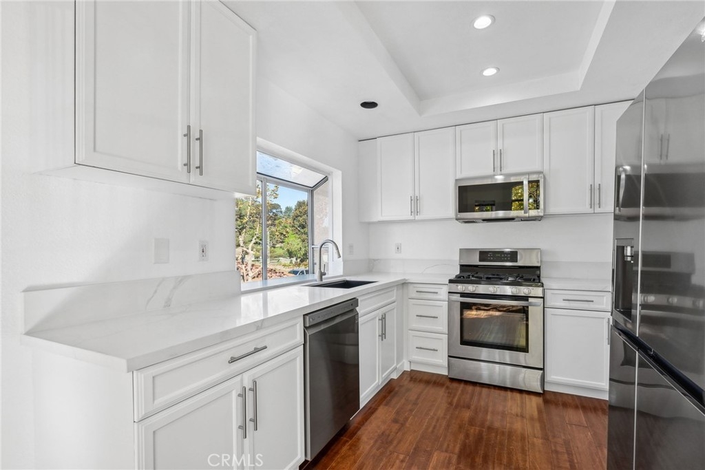 Extremely rare and valuable opportunity, 2 bedrooms plus an extra accessory room! Special builder’s addition, 1 of only 3 known to exist in the community. The third room, loft, office or lounge is 160 additional square feet that is surely to benefit anyone within the Laguna Audubon community, ideally situated near Laguna Beach. Parents, enjoy the benefits of the highly rated Laguna Beach School district with the added convenience of having the School bus stop 800 feet from home. Perfectly located in its private pocket as you enter the complex you will have your assigned private open parking and your enclosed car garage within feet. Enjoy entering your abode on the second level directly from your parking spaces. This fully 2024 remodeled home enjoys ultimate privacy without anyone above or below. Take pleasure from the 15 foot high vaulted ceilings as you enter. The living room offers a cozy fireplace, lots of windows bringing ample natural light connected to a private patio. The Kitchen is equipped with brand new or like new stainless steel matching LG appliances, Quartz countertops, enlarged Kraus sink and a cozy bay window. Ample amount of room for additional kitchen storage and an oversized fridge. Enjoy the warmth of wood floors throughout until you get to the large Master suite with vaulted ceilings, skylight, double vanity sinks and oversized tub. All bathrooms have all new fixtures. Water is being supplied through a brand new water heater. The community has been fully re-piped with PEX piping, ensuring peace of mind and reliability for years to come. The distinctive accessory room that begins from the upper landing of an architecturally pleasing spiral staircase has been used by the owners as a cinematic entertainment room with a queen fold out for guests. There are two attic access doors for added storage and a designated area for built-in closets. HOA covers water, trash and garage electricity. Garages on building corners such as this unit have the opportunity for EV charging expansion. This garage is prepared with a built-in desk, workbench, and Storage loft. Association plans are set for entire exteriors to be repainted 2025. Enjoy resort-style amenities including pools, spas, a gym and clubhouse only 100 feet away. Close access to toll roads, freeways, beaches, shopping and dining. This move in ready home presents an incredible opportunity for an exhilarating coastal lifestyle.
