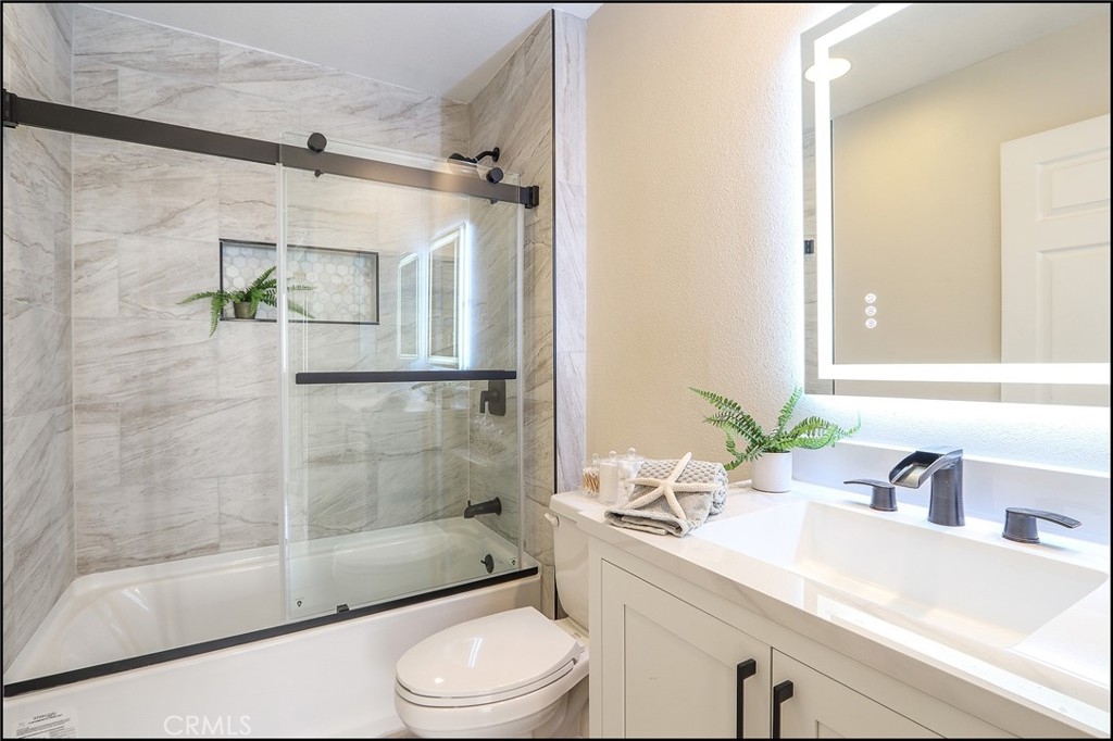 AWESOME TWO STORY TOWNHOUSE STYLE PROPERTY WITH NO ONE ABOVE OR BELOW, 2 BEDROOMS PLUS A LARGE LOFT WITH HIGH CEILINGS, LARGE YARD, 2 CAR ATTACHED GARAGE AND UPGRADES! 1,291 square feet of living space, kitchen with upgraded designer style stone countertops and stainless steel appliances, large powder room and direct access to the two car attached garage with storage cabinets and shelving. Second story featuring a large loft with high ceilings, fireplace and sliding door leading to a private deck, primary master suite with vaulted ceilings, large closet with closet organizers and a stunning master bathroom which has recently been remodeled with white shaker style vanity, Quartz countertop, dual sinks, backlit mirror and designer perfect walk-in shower with tile and stone surround, glass enclosure and upgraded fixtures. Second master suite is also large with two closets and newly upgraded full bathroom with upgraded vanity, Quartz countertop, backlit mirror, tub and shower with designer tile surround, glass enclosure and upgraded fixtures. Repiped with PEX, upgraded HVAC, newer water heater as of 2024. All this plus an awesome location in the highly sought after Windsong gated community offering a resort style pool, spa, tennis, playground, excellent proximity to Aliso Viejo Town Center with shops, restaurants and entertainment, easy toll road (73) and beach access (via 133), highly sought after schools and nearby hiking, biking and nature trails!