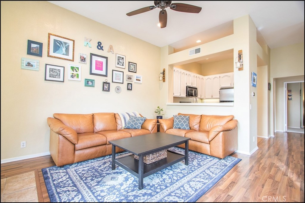 SPECTACULAR LOCATION OVERLOOKING LARGE GREENBELT AND ADDED PRIVACY, OPEN AND AIRY CARRIAGE UNIT FLOOR PLAN WITH HIGH CEILINGS, ATTACHED GARAGE AND UPGRADES! Awesome location and floor plan featuring a large living and dining room with fireplace and high ceilings, and lots of windows to bring in the plenty of sunshine! Upgraded dual glazed windows and sliding doors, designer floors and wrought iron railing at stairs, upgraded designer lighting fixtures and two tone interior paint. Large kitchen with high ceilings, plenty of cabinets, designer counter tops, upgraded appliances, faucet and recessed lights. Spacious master suite with vaulted ceilings, large walk-in closet with pull down ladder, designer ceiling fan light fixture, and a large master bathroom with large oval tun, dual vanities with designer stone counter tops, upgraded lighting fixtures, faucets and framed mirrors, and second bedroom with vaulted ceilings. Large dining room with designer ceiling fan light fixture and upgraded sliding door access to large patio overlooking the large greenbelts and added privacy. Highly sought after end unit carriage style floor plan with direct access to attached garage and no one living above or below! Amazing location within the highly sought after Windflower community with excellent proximity to nearby Aliso Viejo Town Center with shops, restaurants and theaters, easy toll road (73) and beach access (via 133) and award winning schools. Truly a 10+ and a must see now property!