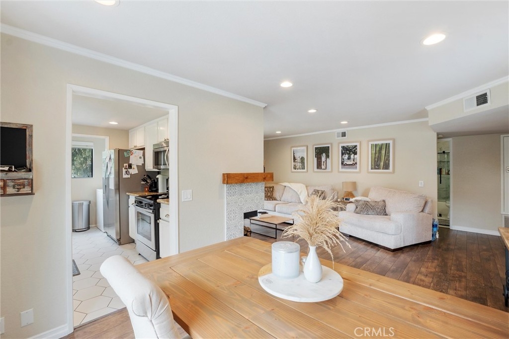 Beautifully updated and set within the Heather Ridge community of Aliso Viejo, this highly desirable corner unit is ready for you to move in and enjoy! Discover the warmth of this second-floor condo's open-concept living and dining areas, enhanced by an impeccably renovated fireplace and multiple windows that bring in tons of natural light. The second-floor condo features 2 bedrooms, including a spacious master bedroom, and 1 full bathroom, as well as an additional 1/4 bathroom. The stylish galley kitchen features ample granite countertops, stainless steel appliances, a sunny garden window, and an attached laundry room. Gorgeous wide-plank flooring continues to the bedrooms where plantation shutters provide extra privacy. An exquisitely reimagined bath treats you to a shower/tub combo with a frameless glass barn door. As a premium perk, you'll have access to community amenities, including a pool, spa, and tennis courts, as well as nearby parks, shopping, and dining options. All this and more could be yours, so come take a tour while it's still available!