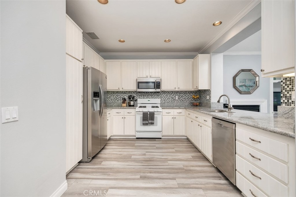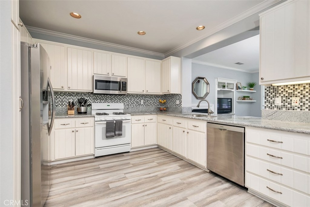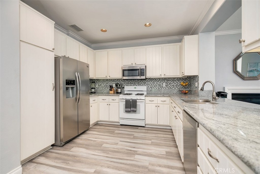 The charm of Cape Cod in the heart of Aliso Viejo! This highly desired plan 2 in Twelve Picket Lane is has a terrific floor plan and will wow you with its upgrades. Downstairs you will find the opening between the kitchen and living room has been enlarged to provide for a great open floor plan. The kitchen has been remodeled with gray marble-like granite counters, glass square backsplash, white cape cod style cabinets, stainless steel appliances and sink with a brushed nickel faucet. Throughout the downstairs you will find crown molding, upgraded baseboards, cased windows, recessed lighting, a custom built-in tv niche, a gas fireplace, and gorgeous laminate wood flooring. The property has just received brand new carpet and upstairs you will find unusually large kids bedrooms with a jack and jill bathroom. The laundry is found in the upstairs hallway and the master bedroom has a walk-in closet. There is beautiful outdoor space complete with slate patio tiles and a grass area. This property has a front patio sitting area in addition to the enclosed back patio. The community has an association pool and spa and you are within walking distance to highly rated schools. The property is within a mile of the Aliso Viejo Town Center where you can find restaurants, a movie theater, and shopping and within ten minutes of either Laguna Beach, Irvine, or Newport Beach! This floor plan rarely comes on the market and this is a wonderful opportunity to come and see why it is so desirable!