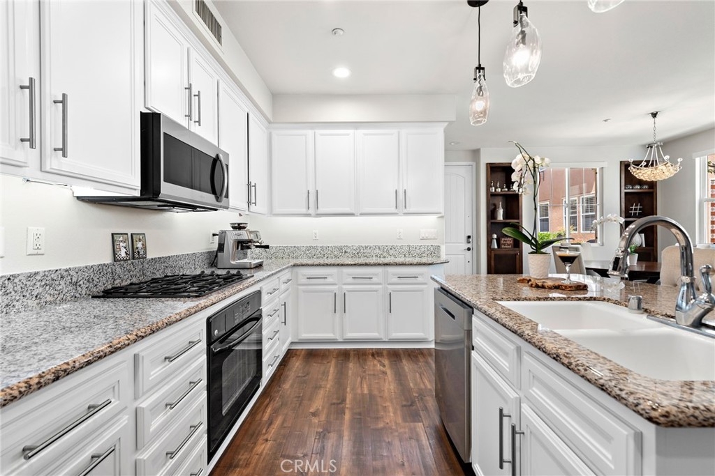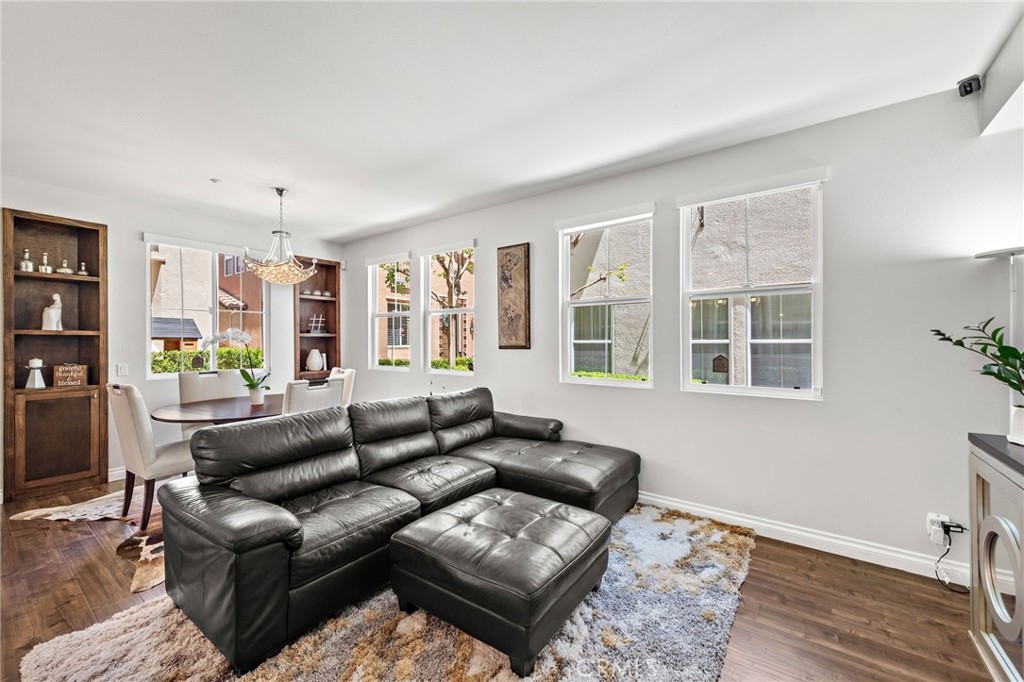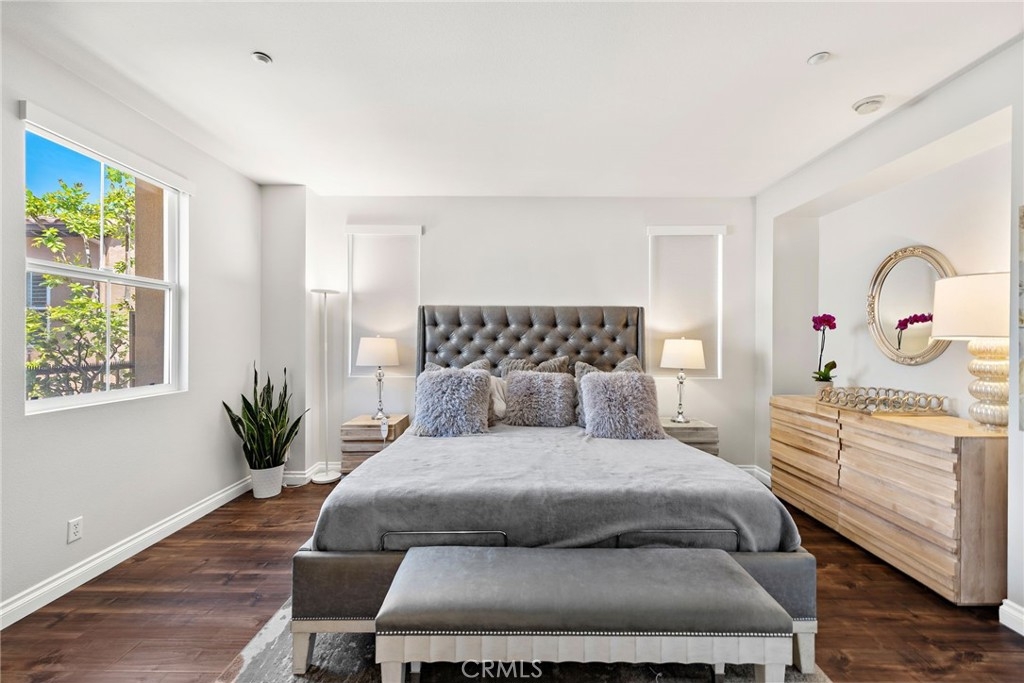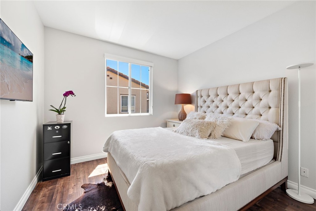 Discover style, comfort, and convenience in this beautifully upgraded 3 bedroom, 2.5 bath end unit townhome located in the desirable Harbor Station neighborhood of Aliso Viejo. With 1,631 sq ft of thoughtfully designed living space, this turnkey home is move-in ready and filled with high end touches throughout. Step inside to discover timeless wood flooring, designer interior paint, custom built-in shelving with accent lighting, and an abundance of natural light streaming through numerous windows—each outfitted with smart blinds and remotes for effortless ambiance. The oversized kitchen island is the centerpiece of the open-concept living area, complemented by modern and sleek appliances and plenty of counter space for cooking and entertaining. Upstairs, a versatile loft area features a built-in desk with drawers and cabinets—ideal for a home office or study space. The spacious primary suite includes an oversized walk-in closet and a beautifully appointed en-suite bath with walk in shower and separate soaking tub. On this level, you will also find two additional generously sized secondary bedrooms, secondary bathroom will dual vanities, and an upstairs laundry room for extra convenience. Additional highlights include a spacious 2-car attached garage with direct access, smart garage door system, multiple custom storage cabinets, and a Tesla charging station—ideal for modern living. Residents enjoy access to the Aliso Viejo Aquatic Center featuring a recreational pool, lap pool, kids splash pad and spa. This amazing neighborhood is also home to multiple nearby parks for the kids and just steps away from the Aliso Viejo Country Club with its 19-hole Jack Nicklaus-designed golf course. Just minutes from the Aliso Viejo Town Center with endless shopping, dining, and entertainment options, top-rated schools, and major commuter routes including the I-5, I-405, and 73 Toll Road—this home offers the perfect blend of convenience and community.