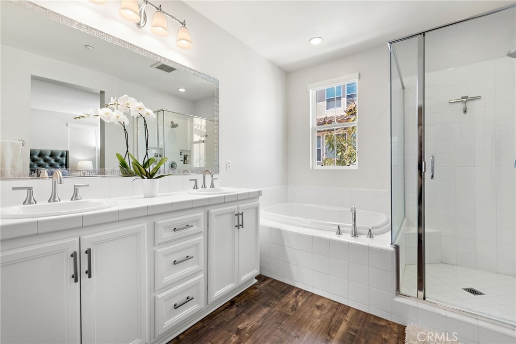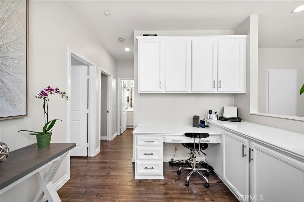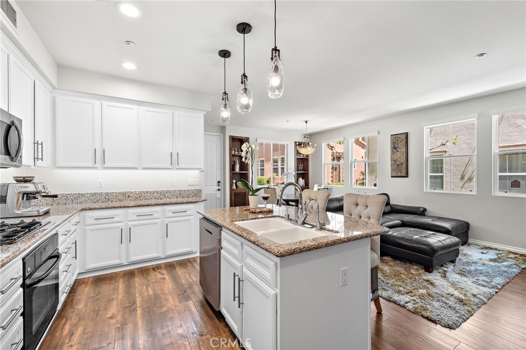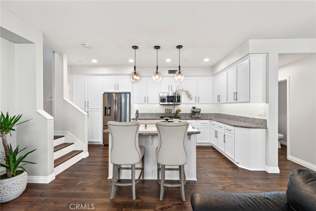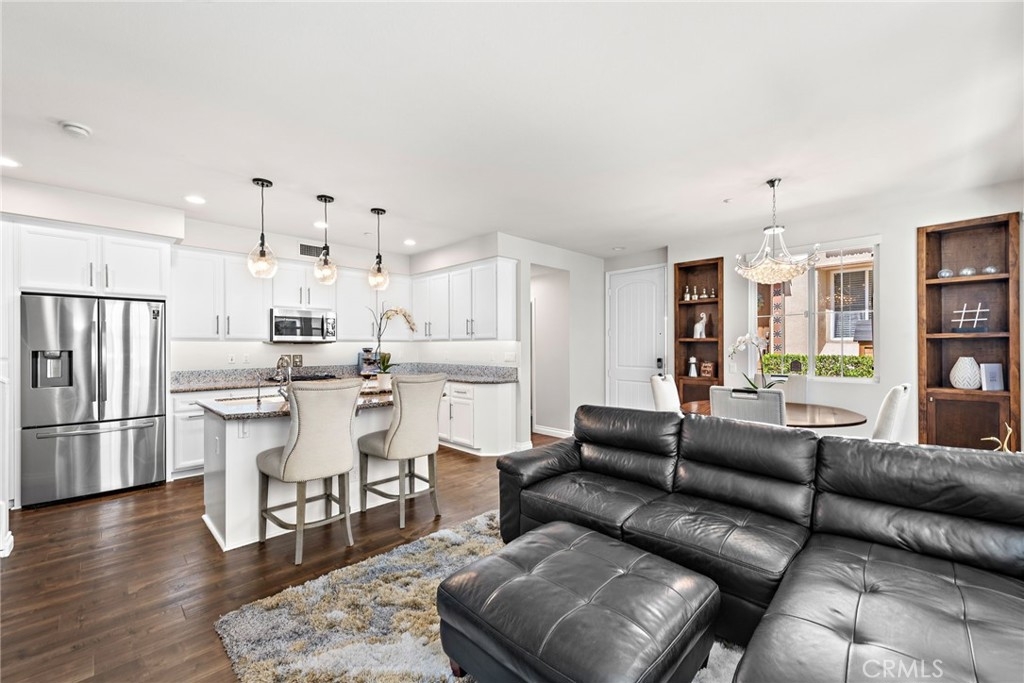 Discover style, comfort, and convenience in this beautifully upgraded 3 bedroom, 2.5 bath end unit townhome located in the desirable Harbor Station neighborhood of Aliso Viejo. With 1,631 sq ft of thoughtfully designed living space, this turnkey home is move-in ready and filled with high end touches throughout. Step inside to discover timeless wood flooring, designer interior paint, custom built-in shelving with accent lighting, and an abundance of natural light streaming through numerous windows—each outfitted with smart blinds and remotes for effortless ambiance. The oversized kitchen island is the centerpiece of the open-concept living area, complemented by modern and sleek appliances and plenty of counter space for cooking and entertaining. Upstairs, a versatile loft area features a built-in desk with drawers and cabinets—ideal for a home office or study space. The spacious primary suite includes an oversized walk-in closet and a beautifully appointed en-suite bath with walk in shower and separate soaking tub. On this level, you will also find two additional generously sized secondary bedrooms, secondary bathroom will dual vanities, and an upstairs laundry room for extra convenience. Additional highlights include a spacious 2-car attached garage with direct access, smart garage door system, multiple custom storage cabinets, and a Tesla charging station—ideal for modern living. Residents enjoy access to the Aliso Viejo Aquatic Center featuring a recreational pool, lap pool, kids splash pad and spa. This amazing neighborhood is also home to multiple nearby parks for the kids and just steps away from the Aliso Viejo Country Club with its 19-hole Jack Nicklaus-designed golf course. Just minutes from the Aliso Viejo Town Center with endless shopping, dining, and entertainment options, top-rated schools, and major commuter routes including the I-5, I-405, and 73 Toll Road—this home offers the perfect blend of convenience and community.