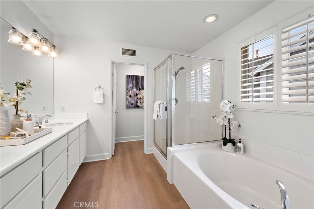 With timeless charm and an ideal location, this beautifully updated home in Aliso Viejo’s highly sought-after Twelve Picket Lane community offers stylish living in the heart of South Orange County. This 3-bedroom, 2.5-bathroom residence seamlessly combines modern upgrades with classic curb appeal. Step inside to an open and airy main level, where brand-new wood-grain luxury vinyl plank flooring, fresh interior paint, and an abundance of natural light create a warm and inviting atmosphere. The spacious living area flows effortlessly into a well-appointed remodeled kitchen, perfect for both daily living and entertaining. Upstairs, you’ll find new carpeting, three generously sized bedrooms, and two full bathrooms, including a serene primary with dual sinks and a walk-in closet. Additional highlights include a charming front porch, an attached two-car garage, and a tranquil outdoor space ideal for morning coffee or relaxing evenings. Recent Updates Include: new recessed LED lighting, new kitchen fixtures, new carpet, new LVP flooring, new paint, refreshed outdoor landscape w/ new fence, wi-fi water monitoring and more! Located within the top-rated Capistrano Unified School District and just minutes from parks, trails, and shopping, 37 Bluff Cove offers an exceptional opportunity to enjoy comfort, convenience, and community in one of Aliso Viejo’s most desirable neighborhoods.
