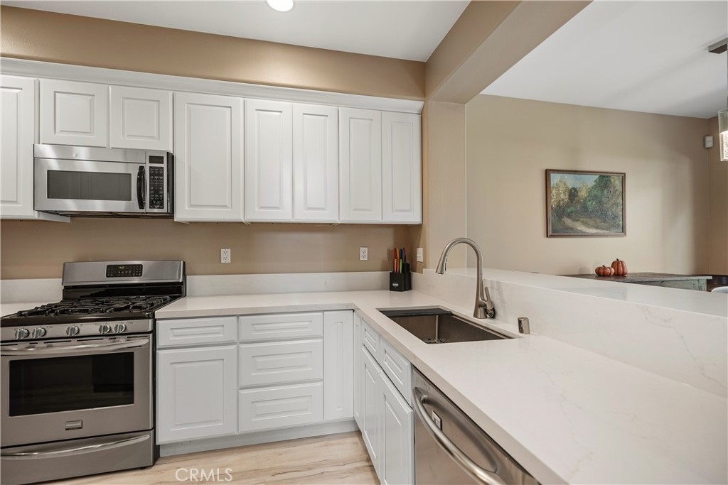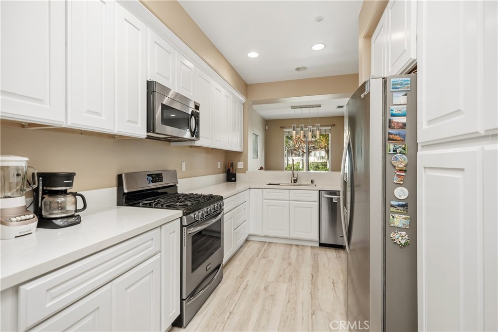 Welcome to this beautifully updated 3-bedroom, 3-bathroom end-unit condo in the desirable Vista Heights neighborhood of Aliso Viejo. This spacious home features a remodeled kitchen, PEX REPIPING, and a main-floor bedroom that can also serve as a home office. The open floor plan with vaulted ceilings includes a large living area with a fireplace. Soak in the fresh air on your private, oversized patio—perfect for entertaining or relaxing. Upstairs, the primary suite offers a walk-in closet. The primary bathroom includes dual vanities, a shower, and an oversized bathtub. Enjoy the convenience of a direct-access two-car attached garage with plenty of storage. Located near top-rated schools, scenic parks, hiking and biking trails, and just a short drive to world-class coastal beaches, shopping, and dining. Experience the best of Aliso Viejo living in this move-in-ready home!