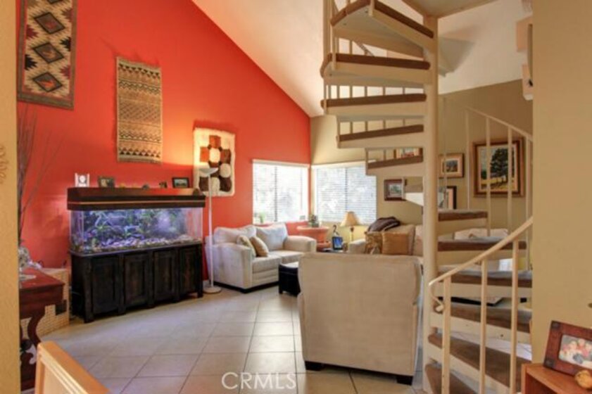 WOW! You will love this private end unit with cathedral ceilings and a cool spiral staircase, no one above or below, very light and bright, nice patio with room for a grill, table and chairs. Dual master bedrooms make this home great for roommates or a small family. The community pool is right around the corner and the garage is below the home. You will love this location- great shopping and award winning schools. No Mello Roos and low HOA's make this home a great rental property, investment or perfect for a first-time buyer. This home won't last long at this price.