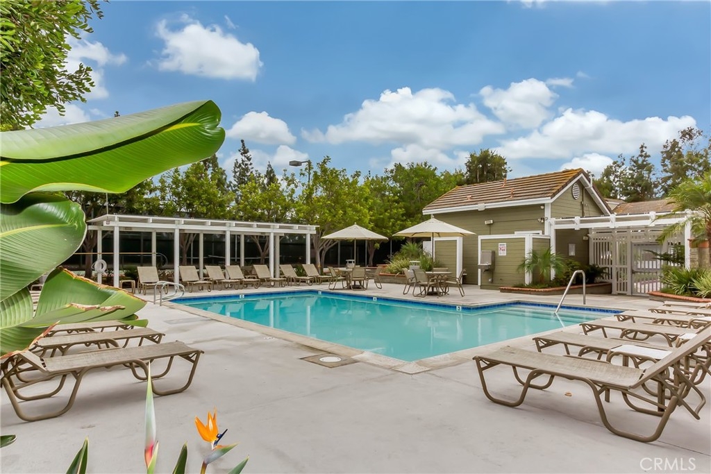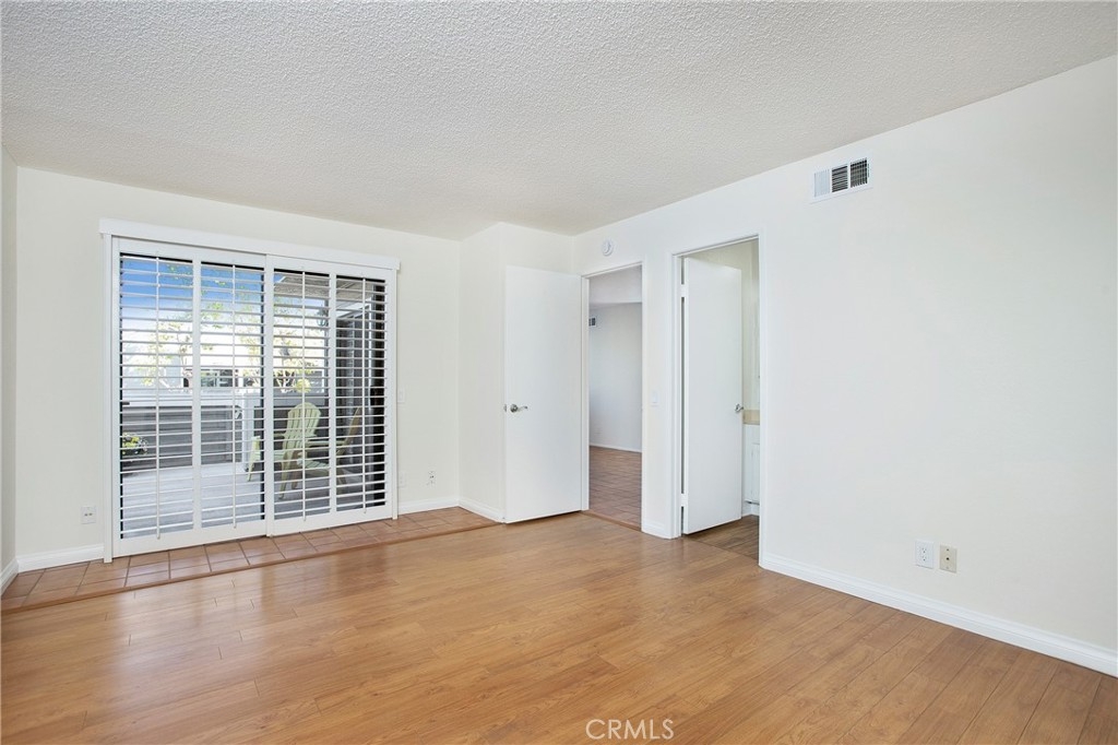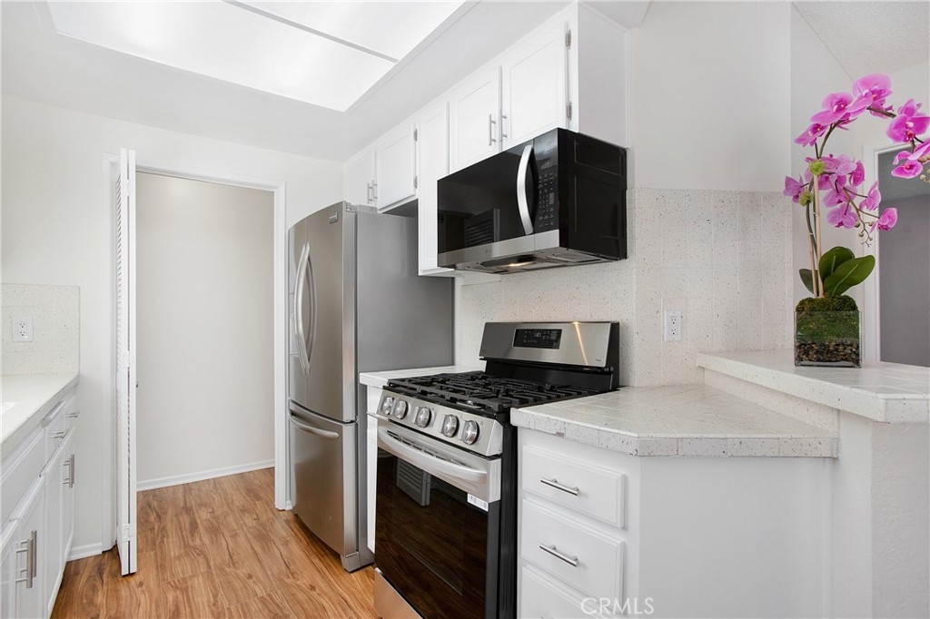 Welcome to your dream home! This charming upper-level condominium perfectly blends privacy, style, and convenience, offering many modern upgrades and amenities. The spacious entrance balcony sets the tone for the open, inviting floor plan. The expansive living room has a slider that opens to a cozy patio, perfect for enjoying your morning coffee or evening relaxation. The dining area boasts tiled flooring and seamlessly connects to the functional kitchen. With a sunny window over the sink, the kitchen has new stainless-steel appliances, including a refrigerator, brand-new gas range, microwave, and dishwasher to add a modern touch. New waterproof laminate flooring in kitchen and bathroom. The laundry closet is designed to accommodate a full-sized washer and dryer, making laundry days a breeze. The bedroom is a serene retreat, complete with a slider to the patio, a large sliding 3-door mirrored wardrobe, and stylish laminate flooring. Plantation shutters throughout the home provide both privacy and a touch of elegance. The ensuite bathroom is thoughtfully designed with a brand-new Kohler highboy toilet, a new glass tub enclosure, two safety grab bars, and a convenient hand-held shower head. Additional features include a detached 1-car garage with built-in cabinetry, a brand-new Lift Master motor and door opener, and a convenient keypad for entry. The community offers a short walk to the pool, spa, and tennis courts, with plenty of guest parking in front of the unit, and your mailbox is nearby. Water and trash are included in the low monthly association dues, adding to the ease of living here. This home is beautiful and meticulously maintained with numerous upgrades: a new air conditioner installed in 2019, a furnace replaced in 2006, and freshly painted throughout. The front door and front hall closet handles are finished in satin nickel, while bedroom doorknobs and all bathroom fixtures are chrome, providing a cohesive and stylish look. Professionally cleaned tile flooring with grout sealer adds sparkle. Conveniently located close to shopping, dining, entertainment, and toll roads, this condominium is a perfect place to call home. Don’t miss the opportunity to make it yours!