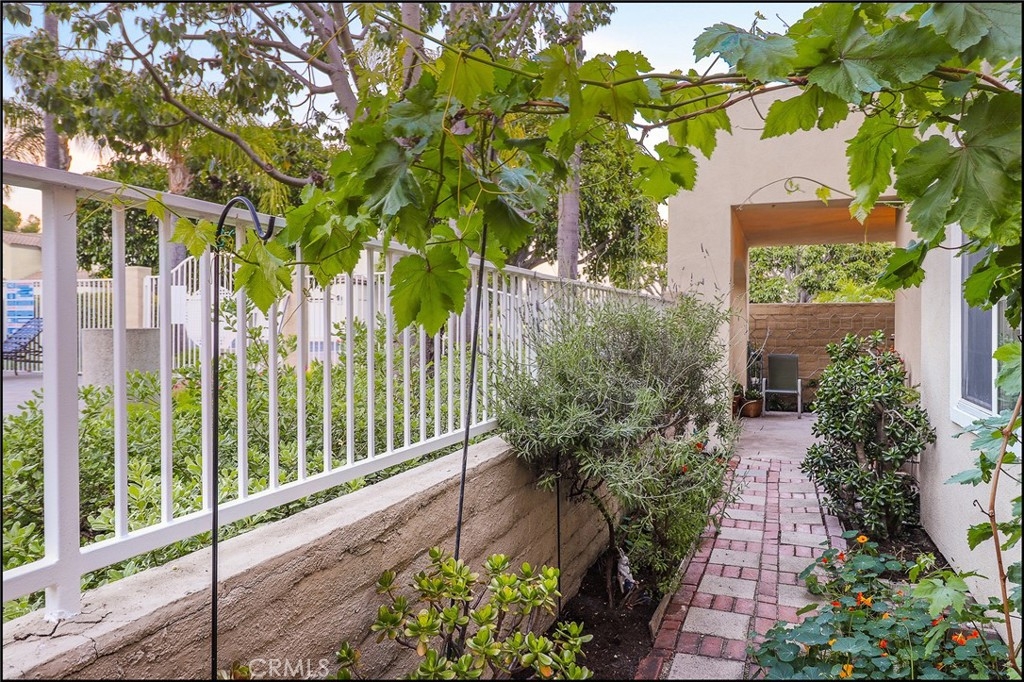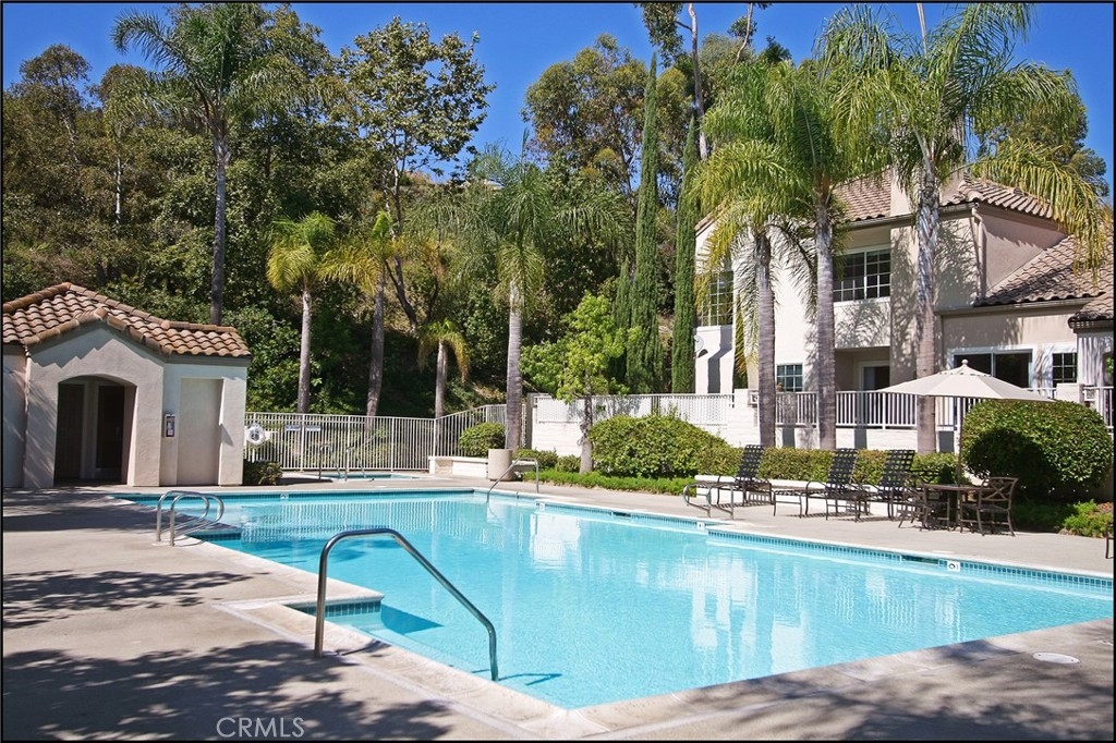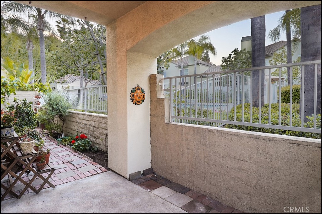 HIGHLY SOUGHT AFTER FIELDCREST VILLAS PROPERTY OFFERING AN EXCEPTIONAL END UNIT LOCATION, GROUND LEVEL WITH NO STEPS, LARGE PATIO AND ATTACHED GARAGE WITH DIRECT ACCESS! Spacious floor plan offering a large living and dining room with fireplace and sliding door access to large rear patio with covered and uncovered areas tastefully landscaped planters and brick accents. Kitchen offers lots of cabinets, plenty of countertop space and a large pantry. Spacious master suite with walk-in closet and sliding door access to the large patio area. There is also direct access to the attached garage with plenty of space plus one assigned parking space. Resort style hoa pool and spa, walk to park, excellent proximity to Aliso Viejo Town Center, easy toll road (73) and beach access (via 133) and nearby hiking, biking and nature trails.