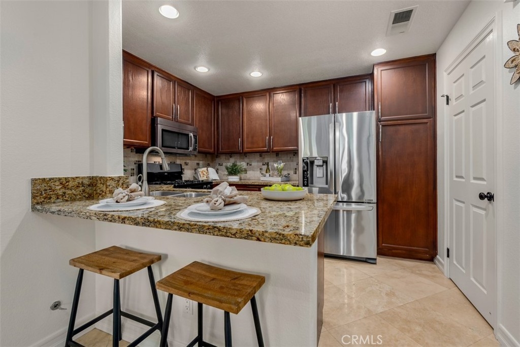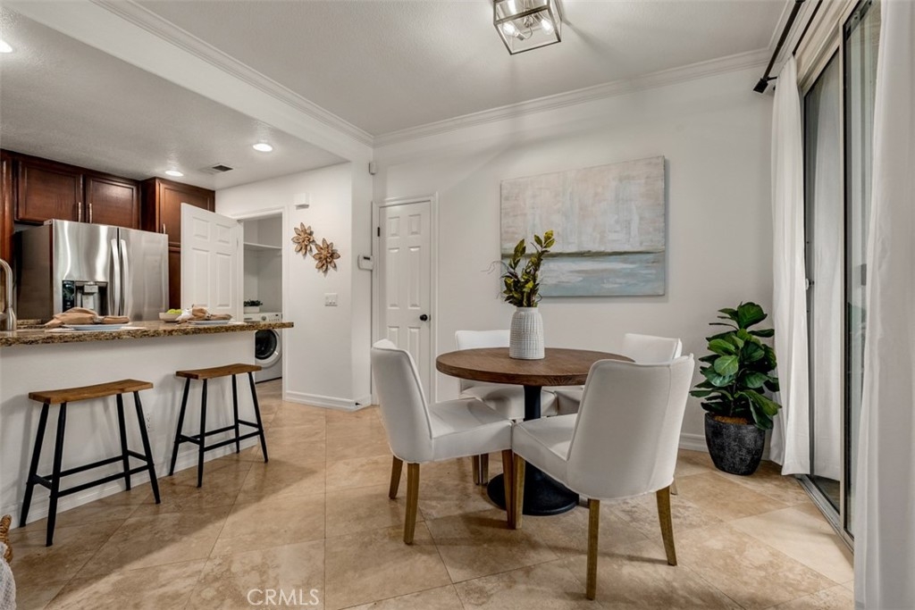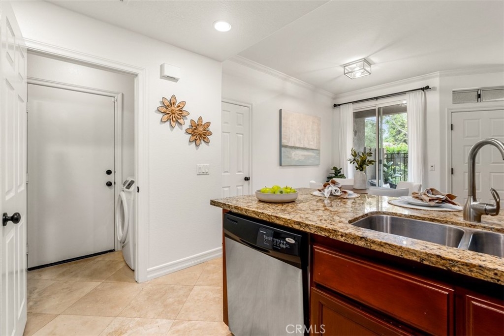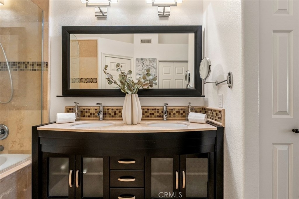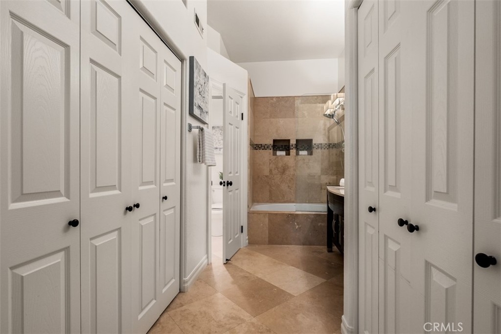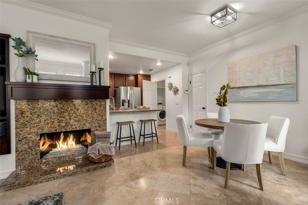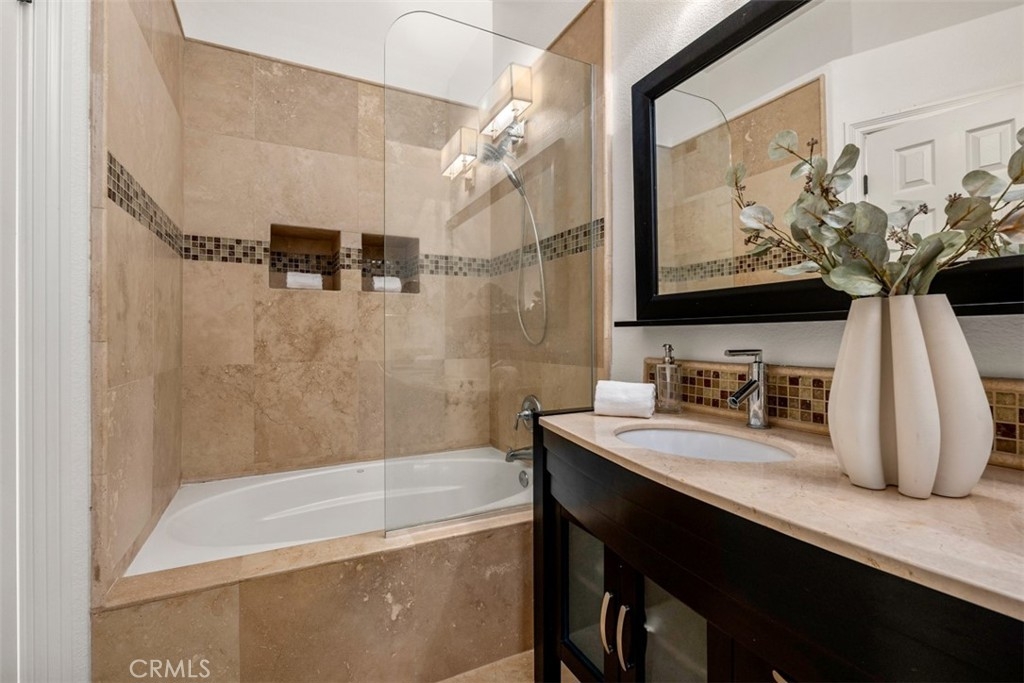 Experience luxury living in this beautifully upgraded 2-bedroom, 2.5-bathroom townhome located in the highly sought-after Seacove Place community of Aliso Viejo. This private, light-filled two-story home offers a desirable layout with no neighbors above or below. Just minutes from the coast and iconic Laguna Beach, it perfectly blends style, comfort, and location. The first floor features travertine tile flooring, custom plantation shutters, crown molding, baseboards, a cozy fireplace, and a convenient powder room. The laundry room is situated just off the kitchen, which boasts granite countertops, stainless steel appliances, ample storage, and an in-kitchen pantry. The dining area flows seamlessly to a gated front patio, ideal for entertaining. Upstairs, the spacious primary suite offers high ceilings, abundant natural light, two large closets, and an ensuite bathroom with dual vanities, a separate toilet room for added privacy, and a marble travertine shower with a glass enclosure. The second bedroom includes a walk-in closet, high ceilings, and a ceiling fan. The remodeled secondary bathroom features marble tile floors and shower walls, a glass enclosure, and a marble vanity. Additional highlights include central air conditioning, in-unit laundry, an attached 1-car garage, and a reserved parking space. The Seacove Place community offers resort-style amenities, including pools, spas, picnic areas, dog-friendly walking paths, and ample guest parking. Located in a private interior section of the community, you’re close to parks, shopping, walking trails, and top-rated schools. Whether you’re a first-time homebuyer or seeking a stylish coastal retreat, this move-in-ready home is not to be missed. Water and trash services are included in the HOA.