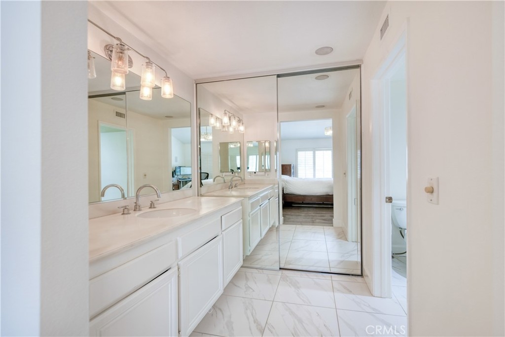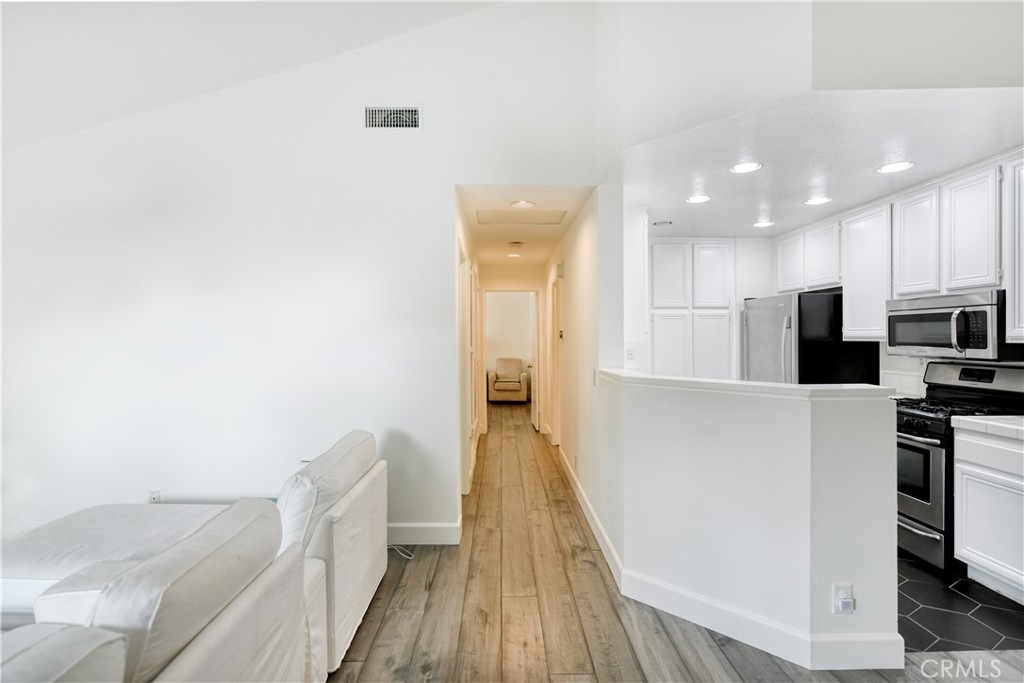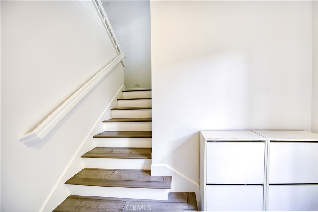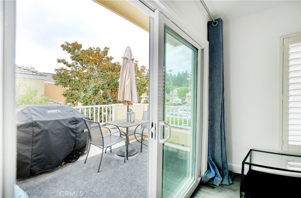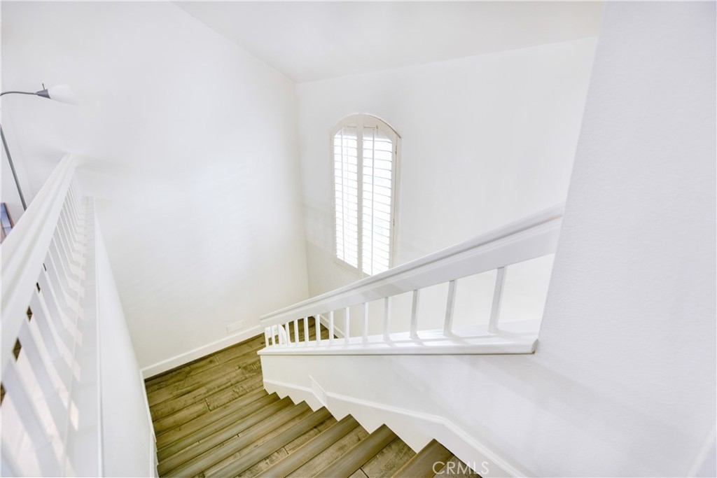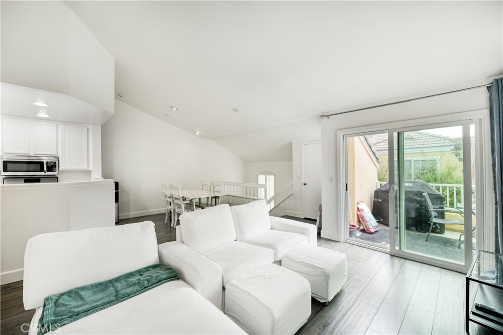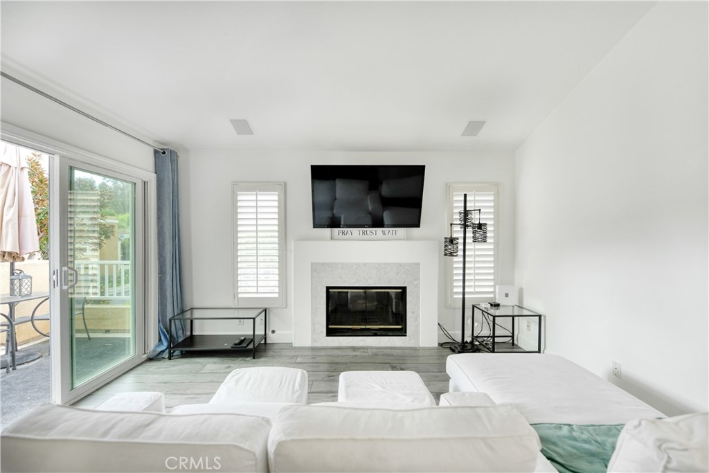 Stunning turnkey condo in the highly sought-after Villas South community of Aliso Viejo! This rarely available corner unit offers 2 bedrooms, 2 bathrooms, and a private one-car garage with direct access — with the added benefit of having no neighbors above or below. The inviting entry showcases a custom wood staircase leading to the open and airy upper-level living space. Soaring vaulted ceilings, wide-plank hardwood flooring, recessed lighting, surround sound, and an expansive balcony create the perfect setting for both everyday living and entertaining. A cozy fireplace with custom marble tile, plantation shutters, and upgraded baseboards enhance the home’s elegance. The chef’s kitchen features crisp white cabinetry, stainless steel appliances, and tiled flooring, seamlessly connecting to the spacious dining area. The primary suite boasts vaulted ceilings, oversized windows, a custom built-in closet. Additional highlights include a secondary bedroom and bath, a garage with built-in cabinetry and extra storage, a newer water heater, and an upgraded HVAC system. Residents of Villas South enjoy resort-style amenities including a heated sparkling saltwater pool, relaxing spa, and community BBQ area. Conveniently located near shopping, dining, award-winning schools, and easy freeway access, this condo is less than 15 minutes from Laguna Beach — offering the perfect blend of comfort, style, and lifestyle. Don’t miss this exceptional opportunity to own a beautifully upgraded home in one of Aliso Viejo’s most desirable communities!