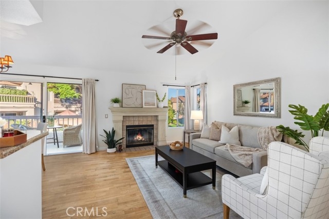 Welcome to this beautifully customized and spacious two-bedroom condo with an additional office/den or third bedroom, permitted and thoughtfully designed for single-level carriage style living! Step inside to an open floor plan bathed in natural light, featuring high ceilings, wood floors and a charming fireplace in the great room. The sunny kitchen seamlessly connects to the living space, ideal for entertaining. Enjoy serene views from the wrap-around balcony overlooking the lush greenbelt. Features include upgraded and newer AC, HVAC and water heater, added interior square footage, inside full size laundry room, ample storage in the two car direct access garage plus a double car driveway (which is almost impossible to find in this price range) and the essential appliances of washer, dryer, and refrigerator included. Please note the third bedroom is the room addition and currently being used as an office/den. It does have a closet and a door and is separate from the main living areas and built above the garage with interior access from the interior hallway and stairs to the attached two car garage. It is a fabulous addition with so many possibilities and makes a wonderful office and would be an excellent theater room, gym or combo office/guest room…the possibilities are whatever you desire. Perfectly situated, this condo offers easy access to Laguna Beach, town center, popular shops, trendy eateries, pristine beaches and coves of Orange County, top-rated schools, and just minutes to major freeways and toll roads. As a resident, you'll have access to a community pool and spa, with optional membership to the Aliso Viejo Golf Club and Aliso Viejo Aquatic Center. Don’t miss out on this incredible opportunity for stylish and convenient living.Call today to schedule a tour!