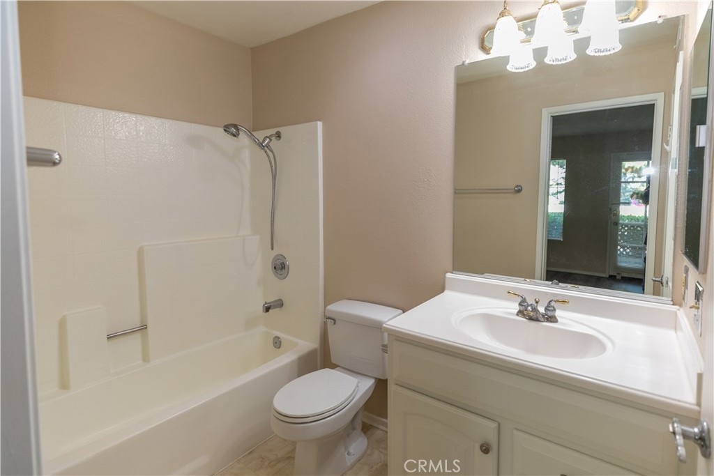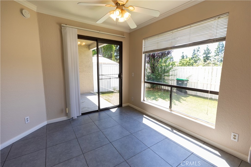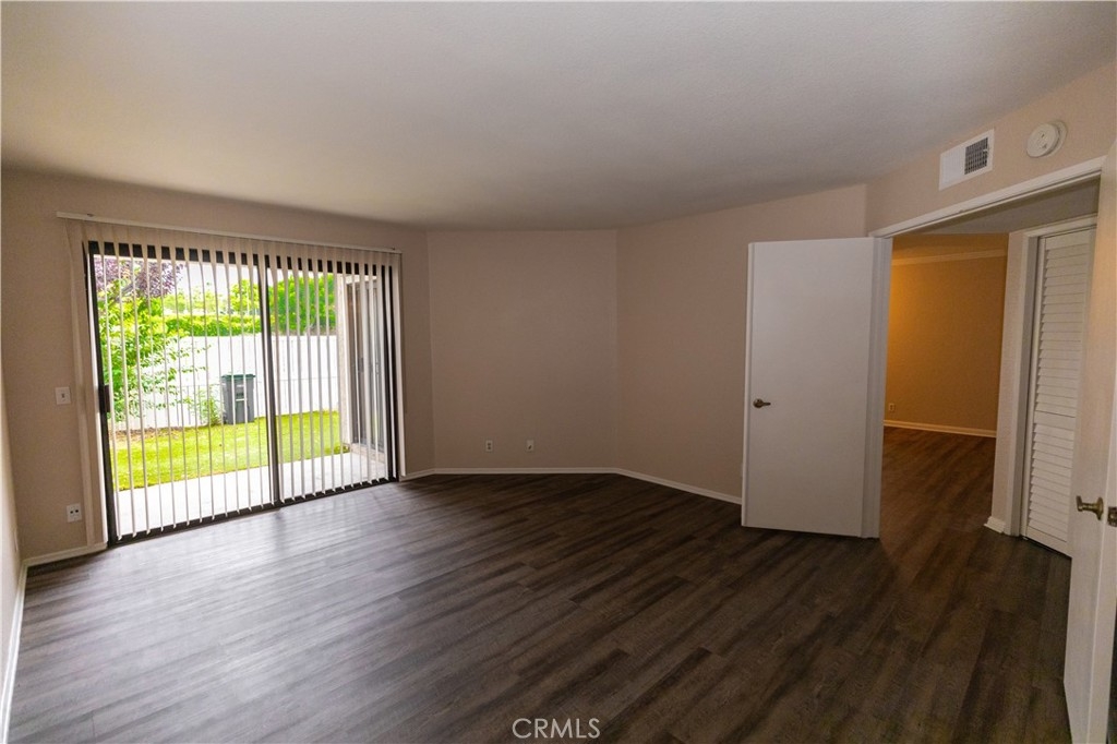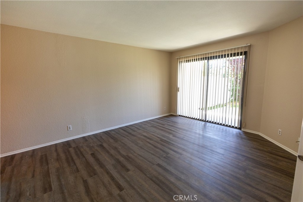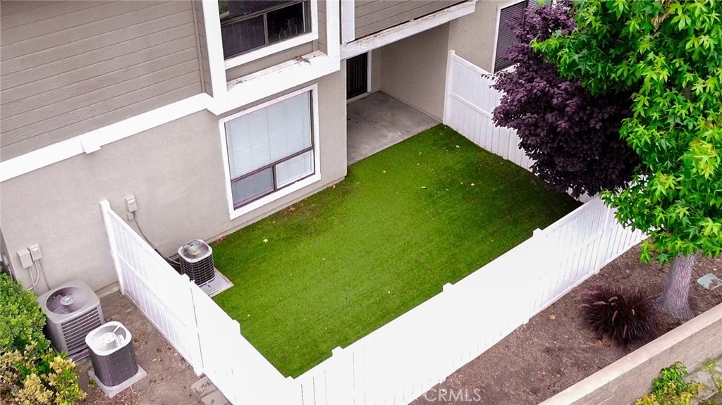 Recently Updated Downstairs Corner Unit in a Prime Location This recently updated corner unit offers a perfect blend of comfort and style with new interior paint. The home features wood laminate flooring in the living room, hallway and bedrooms. The living room, complete with a cozy fireplace, provides a welcoming space to relax. The primary bedroom features a double-door entry and has direct access to the private, fenced backyard with low-maintenance artificial turf—ideal for outdoor enjoyment. The second bedroom includes its own access to an enclosed front patio and direct hallway bathroom access, providing added convenience and flexibility. With central heat and AC, you can regulate the temperature year-round, and the one-car garage offers secure parking. Enjoy the amenities of the HOA community, which includes a pool, hot tub, BBQ area, and tennis court. Located near schools, shopping, dining, and with easy access to the 73 and 5 freeways, this home combines modern living with a convenient location.