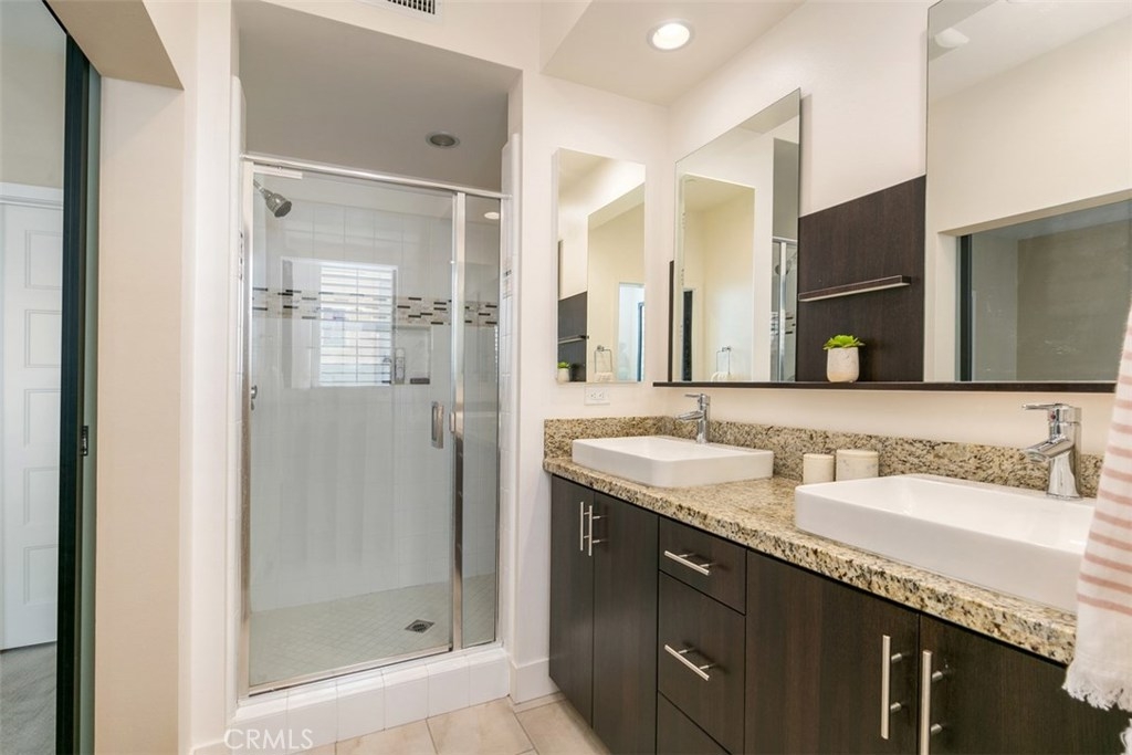 COASTAL CHARM AT ITS BEST - Vantis offers luxurious amenities; resort style pool & spa, gym, a beautiful clubhouse and unlimited guest parking. Approaching this modern home, you are welcomed by the highly demanded spacious front porch. Entering the home you walk in to the open floorplan with combined kitchen, dining and living spaces. Tastefully upgraded kitchen boasts granite countertops, stainless steel appliances, and elegant flooring. Oversized breakfast bar and cabinetry offer ample storage and cooking space. As you head to the second floor master bedroom, you will be impressed with the contemporary touches. The spacious master suite has generous walk-in closets, a nicely upgraded bathroom with dual vanity, quartz countertop and a good sized walk-in shower. On the third floor of this home, you will find 2 private bedrooms and another upgraded bathroom with tub. This amazing home has plantation shutters throughout. The laundry room is conveniently located on the second floor next to the master bedroom. From the kitchen you have direct access to the spacious, two-car garage with ample storage. This home offers private and quiet living, is in move-in ready, upgraded condition. Multiple smart home features; voice operated light, thermostat & video doorbell included. The home is situated in close proximity to Aliso Viejo Town Center, away from the main traffic, yet close to the Toll-Road and Highways for easy access to award winning schools and world famous beaches nearby.