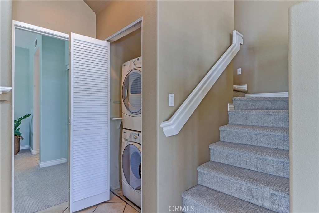 END UNIT condo in St. Tropez with NOBODY LIVING ABOVE OR BELOW. PRIVATE PARKING FOR 3 CARS (attached garage, driveway and 1 assigned parking space right across from the driveway). HEATING & AIR REPLACED. As soon as you hit the top of the entry stairs, you are wowed by the dramatic ceilings and many large windows that make it feel spacious and airy. PLANTATION SHUTTERS have been added throughout the house. Nice, open floorplan with a large balcony off the dining room that expands your living space. The balcony is private and the neighboring buildings are at a substantial distance. The kitchen is surrounded by large windows and you will love the view out to your balcony and the many palm trees in the backdrop. All stainless kitchen appliances are included (dishwasher is brand new). A privacy door and plantation shutters have been added to enclose the upstairs loft and once up there, you will find a full bathroom, closet, peaked ceiling with a ceiling fan & a 2nd outdoor balcony. Brand new carpet just installed on staircases and in bedrooms. There are 3 ceiling fans in the house to keep you cool. Interior laundry on the primary bedroom level with W/D included. Neighborhood saltwater pool & spa is just across the parking lot. GATE ACCESS from St. Tropez to ARGONAUT PARK NEXT DOOR. The park runs the full length of St. Tropez & has a playground, basketball court, picnic area & plenty of grass. HOA has re-piped with PEX. Walking distance to a fantastic newer dog park, Starbucks, Aliso Viejo Town Center, schools, various parks, tennis courts, golf and the aquatic center. Quick access to the 73 Toll Rd. Just minutes to beautiful Laguna Beach. No Mello Roos. FHA & VA approved. HOA is currently in the planning to do some wood replacement and paint the buildings & garage doors. There is talk of changing the exterior color to give the neighborhood a fresh new look.