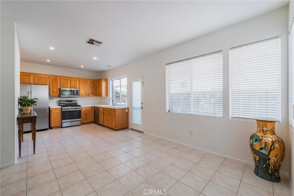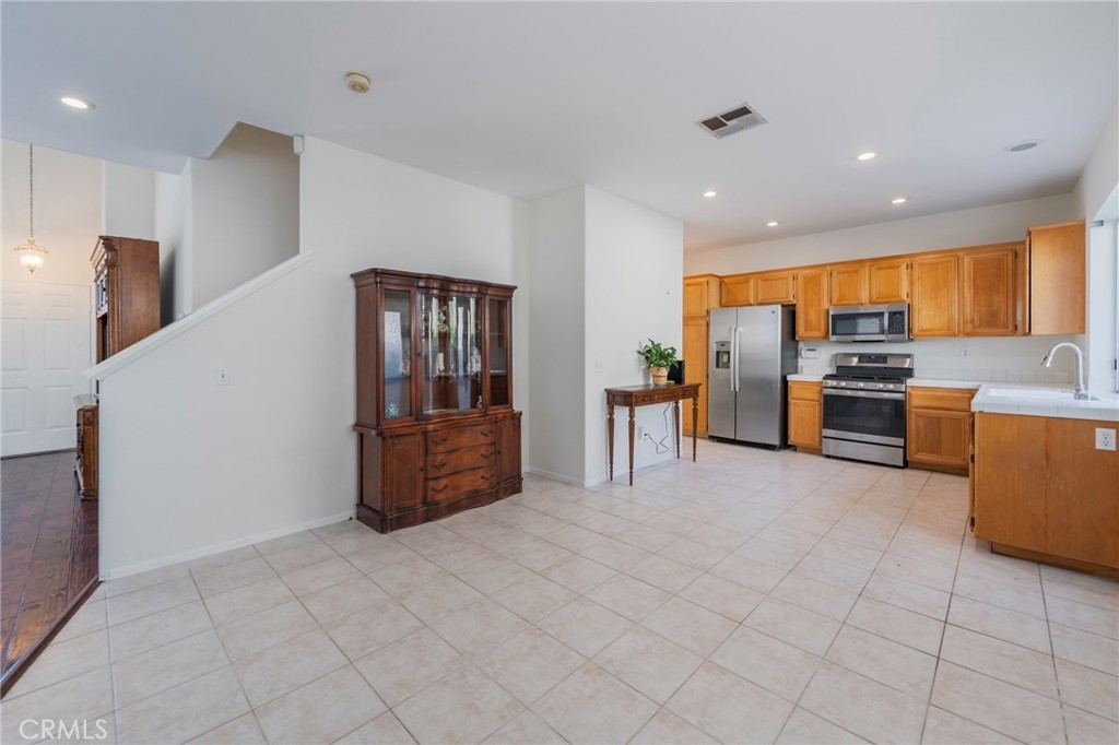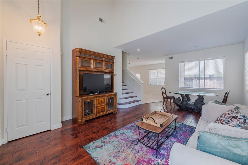 Welcome to the largest floor plan in The Hamptons with a VA Assumable Loan at 2.75%. This beautifully upgraded home features an enclosed loft, ideal for a fourth bedroom or home office. Rich cherry engineered hardwood floors run throughout, complemented by recessed lighting, freshly painted walls and soaring vaulted ceilings that create a light, open feel. The formal living and dining areas are perfect for entertaining, while a separate family room with a cozy fireplace offers a more relaxed setting. The kitchen is both spacious and functional with ample counter space and cabinetry. Upstairs, the generous primary suite boasts vaulted ceilings, a large walk-in closet, dual sinks, and a soaking tub with shower. Step outside to a private backyard with room to BBQ and entertain. Enjoy resort-style amenities including a pool with cabanas, outdoor fireplace, BBQ area, tot lot, and a charming Little Free Library. Attached 2-car garage and a prime location make this a must-see.