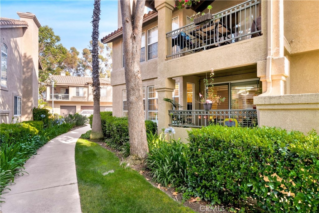 Welcome to 51 Sentinel Place, a beautiful ground-level unit with 2 bedrooms and 2 bathrooms. The unit features a direct-access oversized one-car garage with a laundry area and ample storage space. Located in a corner location with large windows allows an abundance of natural light throughout the day. The spacious living room boasts recessed lights, crown molding, window shutters, and a cozy fireplace. The dining room opens to a generous- sized balcony, providing a wonderful outdoor retreat perfect for dining and relaxation. The tastefully remodeled kitchen features upgraded cabinetry, counters, and stainless steel appliances. Down the hall, you'll find a bedroom currently utilized as a kids' room, with the full hallway bathroom located across the way, featuring a stand-up shower. The primary suite features high ceilings, a wall-to-wall closet, and an en-suite with dual vanity and spa-like style bathroom. Enjoy the perks of the wonderful resort-like Calabria community, which offers a large pool. The Community is ideally located only a few minutes from the Aliso Viejo Town Center, providing easy access to a variety of amenities, including shops, dining, a movie theater, Costco, and nearby high-ranking schools. Fabulous beaches and luxury resorts are only a short drive away. Convenient access to freeways and toll roads makes this home a truly rare find. Plus, there are no Mello-Roos fees!