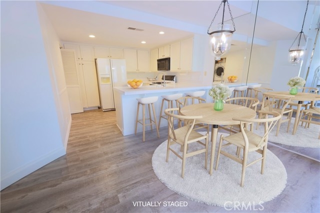 Welcome to your serene retreat in the heart of Aliso Viejo! Nestled in the tranquil community of Heather Ridge, this upper-level 2-bedroom, 2-bathroom unit offers an ideal blend of comfort and convenience. Step inside to discover freshly painted interiors that exude a light and bright ambiance, complemented by stylish vinyl flooring throughout. The kitchen features inside stackable laundry, perfect for effortless multitasking. Enjoy the luxury of privacy with no neighbors above or below, and unwind on your balcony patio, which is ideal for morning coffees or evening relaxation. For added convenience, a one-car garage underneath the unit ensures your vehicle is always secure. Outside, indulge in resort-style living with exclusive access to a sparkling pool, soothing spa, and well-maintained tennis courts within the community. Beyond your doorstep, embrace the vibrant Aliso Viejo lifestyle, boasting many amenities, including shopping, dining, and outdoor activities oh and don't forget Costco is in walking distance ! Don't miss the opportunity to make this peaceful haven yours—schedule your tour today and discover the charm of Aliso Viejo living! Water and Trash are included in HOA dues