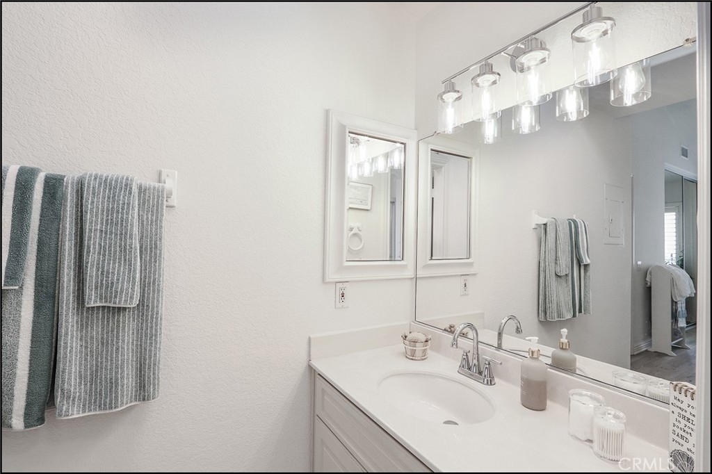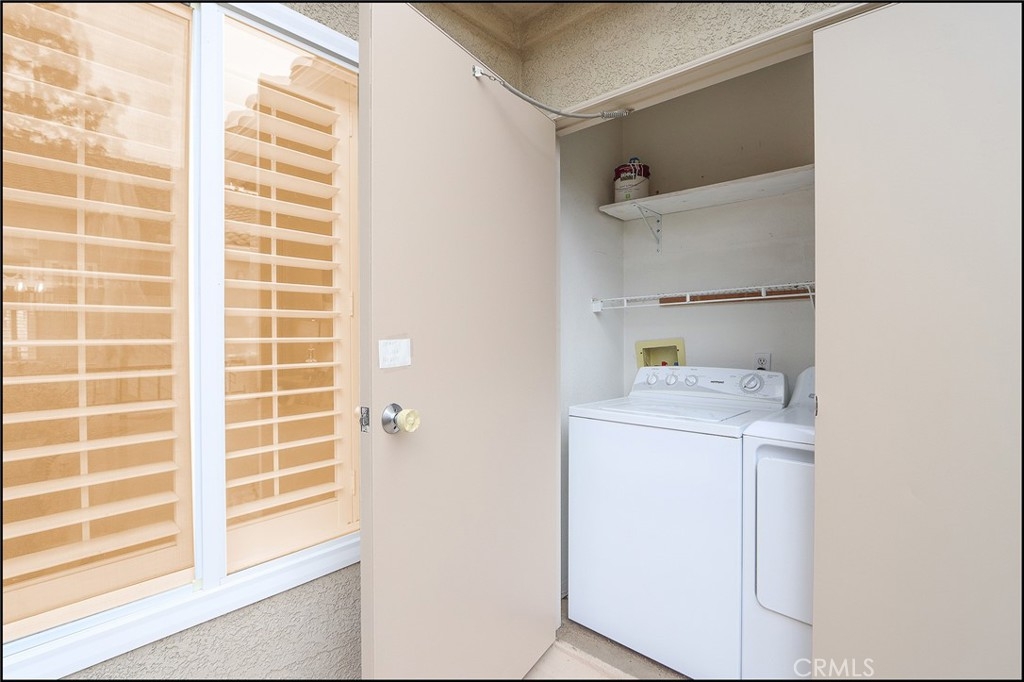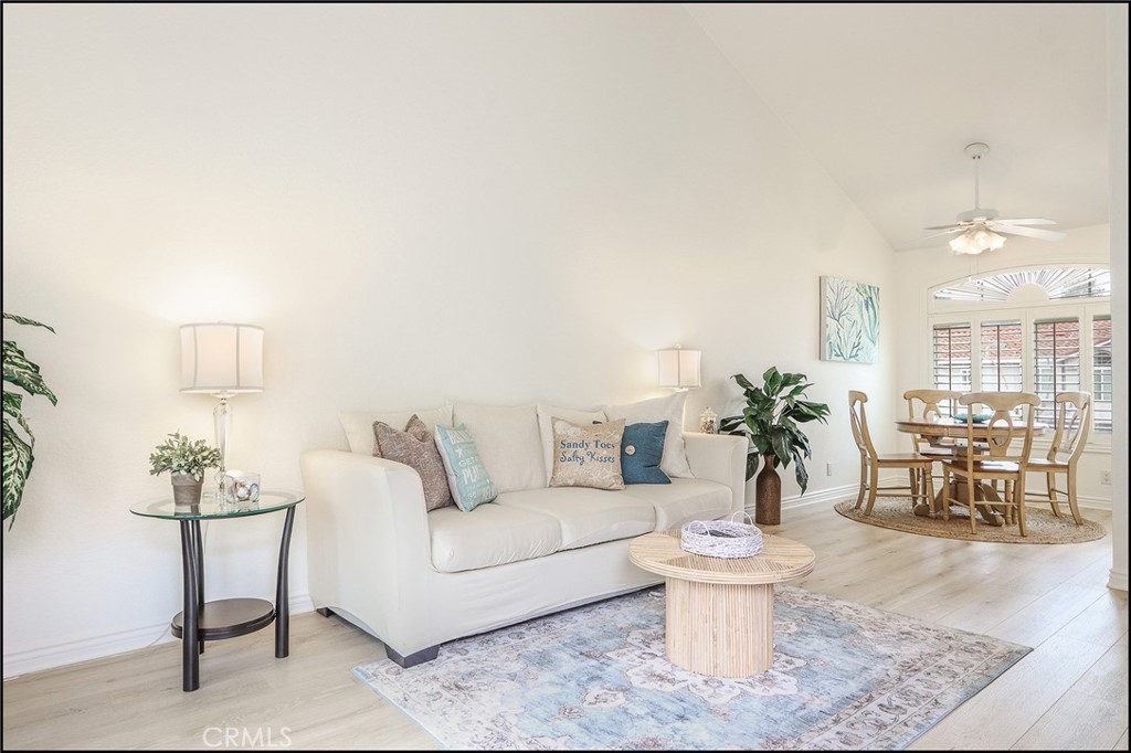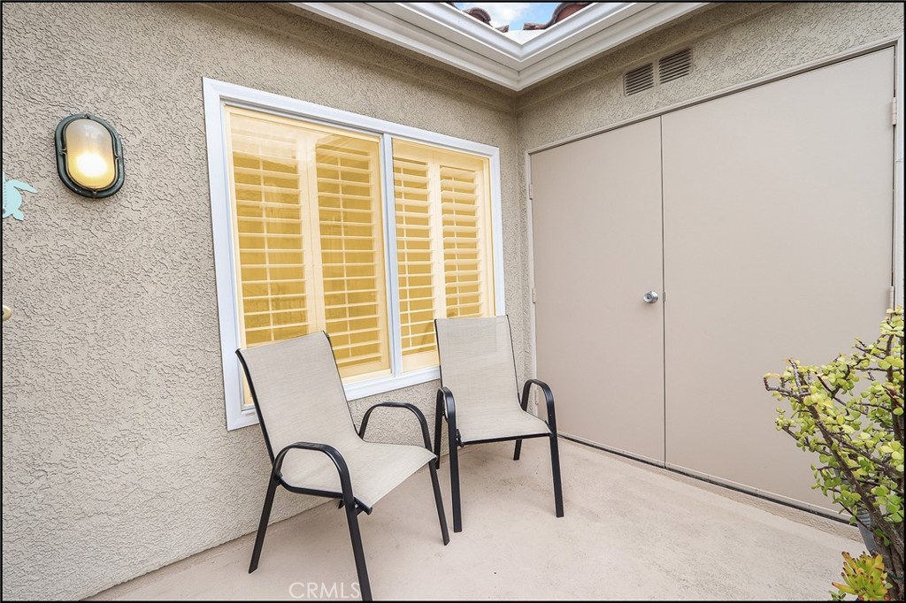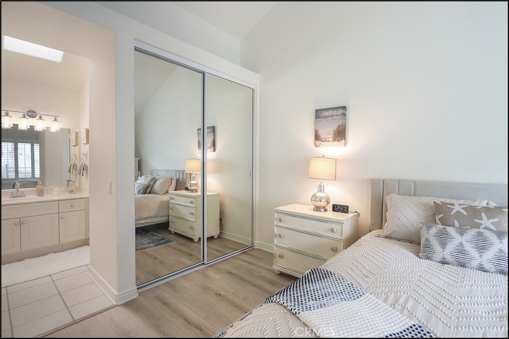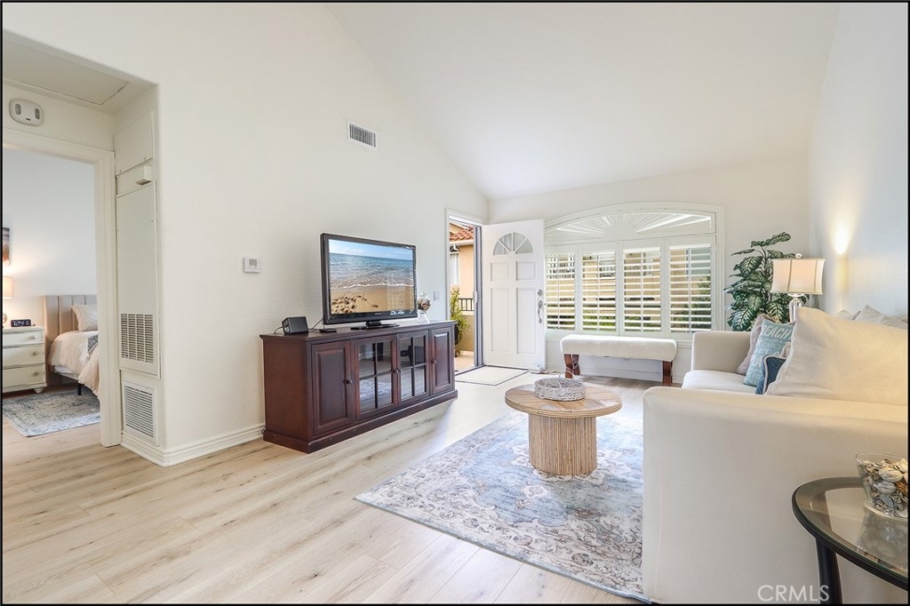 EXCEPTIONAL CARRIAGE UNIT WITH NO ONE LIVING ABOVE OR BELOW! MODEL PERFECT AND UPGRADES THROUGHOUT! Open and airy floor plan offering a spacious living and dining room with vaulted ceilings and large windows to bring in plenty of natural light. Stunning kitchen has been upgraded with granite countertops, upgraded appliances including a new dishwasher and new garbage disposal, designer style sink and faucet. Newer HVAC as of 2024, fresh interior paint, upgraded dual pane windows, custom plantation shutters, retractable screen door, upgraded LVP flooring and upgraded baseboards, upgraded lighting including ceiling fan light fixture. Spacious master suite with vaulted ceilings, two closets with mirrored closet doors and master bathroom featuring tub & shower with upgraded door, upgraded fixtures and lighting and full size washer and dryer area. There is also a private deck with plenty of space to enjoy your morning coffee or outdoor dining. One-car garage plus guest parking directly across, resort style community pools and spas, clubhouse, bbq area, large greenbelts with rose garden, water and trash services are included in the HOA. Awesome location with easy toll road (73) and beach access (via 133), excellent proximity to Aliso Viejo Town Center with shops, restaurants and entertainment, highly sought after Laguna Beach schools and nearby hiking, biking and nature trails!