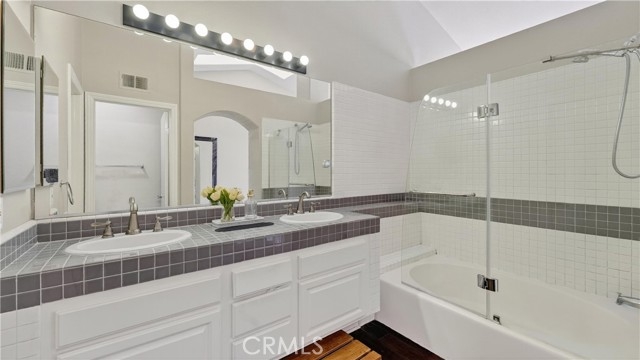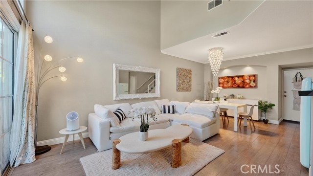 Turnkey 2-bedroom, 2.5-bath condo in the desirable Applause Community of Aliso Viejo. The main level features laminate wood flooring, crown molding, large baseboards, and recessed lighting. The kitchen includes white quartz countertops and connects directly to the dining and living areas, creating an open, inviting feel. Upstairs includes hardwood flooring and two primary suites, each with a private ensuite bathroom. The main suite offers a large soaking tub, walk-in closet, and private balcony. Enjoy direct access to the attached two-car garage, community pool, and ample guest parking. Located near Costco, 99 Ranch Market, Trader Joe’s, Ralphs Grocery, Chick-fil-A, and Paris Baguette, with nearby parks including Woodfield Park, Springdale Park, and Aliso Viejo Community Park. Schools include Aliso Niguel High School and Don Juan Avila Middle School, both highly rated. Convenient access to the 73 and 5 freeways—come and see it today!