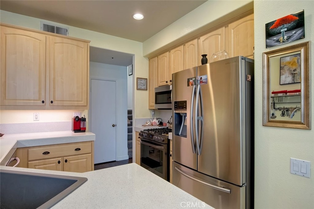 NEW PRICE! Located in the heart of Aliso Viejo, this lovely home boasts vaulted ceilings, spacious floor plan and great location within the community. Offering 2 Bedrooms, 2.5 Baths and spacious landing area that is perfect for home office or library. Master suite has a private balcony, skylight and walk-in-closet. Master bath with dual sink vanity & soaking tub. Second bedroom has double door entry & its own full bath. Gorgeous kitchen with spacious nook has upgraded soft close cabinets, sparkling countertops, lovely modern sink, newer dishwasher & fantastic new stainless steel LG range. Hardwood flooring & tiled floor on the first level, marble tiles in bathrooms, newer carpet on stairs & landing and beautiful newer laminate in bedrooms. Direct access to 2 car garage with built in storage. Added upgrades; 2 door rings, upgraded windows & slider, almost new water heater, AC is 2 years old . Home has been re piped with Pex piping. Pretty rose garden, pavers & lush greenery surround the private patio, perfect spot to relax & entertain in. Community offers beautiful Pool & Spa. HOA dues include water & trash. Low tax rate & no Mello Roos. Amenities abound this beautiful home. If shopping & good entertainment are on your list & Parks or Trails interest you, no worries, all are just around the corner! If Beach is your preference, got you covered - 5 short miles to amazing OC Beaches! Your opportunity is here, don't miss out on this lovely home!