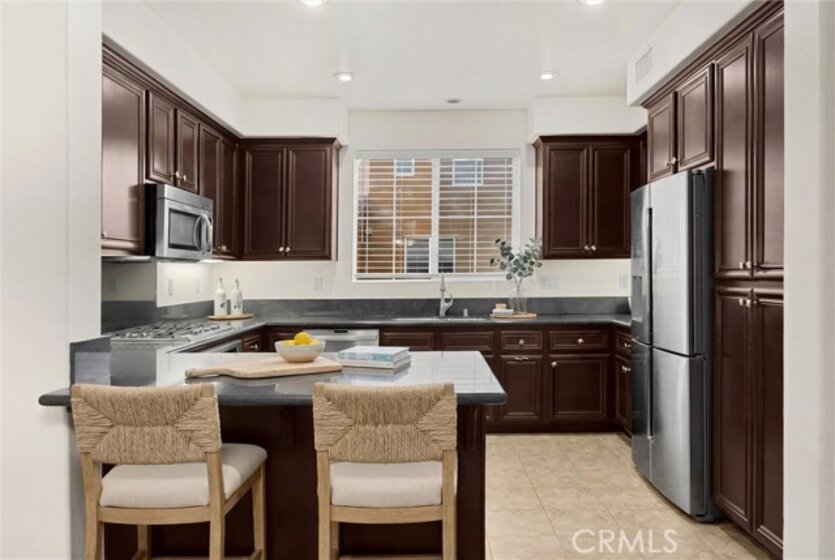 Welcome to Harbor Station, a Mediterranean-inspired townhome-style community nestled near the Aliso Viejo Country Club—where classic architecture, lush landscaping, and resort-like amenities set the stage for exceptional living. This beautifully updated 3 bedroom/3.5-bath condominium is thoughtfully designed for comfort, flexibility, and everyday ease. On the first of the three levels is a spacious bedroom and bathroom—perfect for guests, a home office, or multigenerational living—along with direct access to the attached two-car garage. One floor up, the home opens into a bright, open-concept main living level. Wide-planked floors, recessed lighting, and an effortless flow connect the living, dining, and kitchen spaces. The kitchen is the heart of the home, featuring rich espresso cabinetry, granite countertops, stainless steel appliances, a gas range, and a spacious breakfast bar. A tastefully updated powder room on this level adds to the home’s thoughtful design. On the third level, the primary suite offers a serene escape with its own bathroom that boasts dual vanities with granite countertops and a walk-in shower, while the additional bedroom also enjoys a private full bathroom. In fact, all three bedrooms have their own bathrooms —a rare and highly desirable layout. Residents enjoy resort-style amenities including outdoor cooking and entertaining areas,, along with award-winning schools and easy access to the 73, 133, and 5 freeways. Move-in ready, paired with resort-style amenities to elevate your everyday living, it is a must-see!