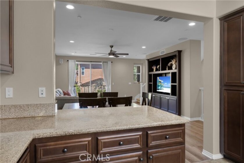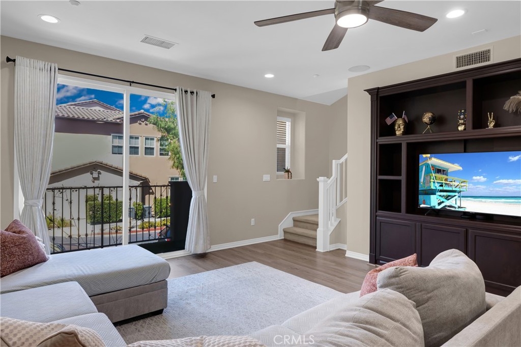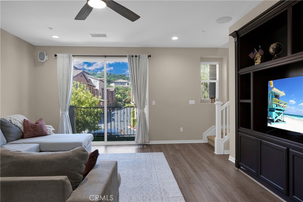 Beautiful 3-story townhome in Harbor Station, part of the desirable Glenwood Master-Planned Community. This light and bright, freshly painted home features new recessed lighting and tasteful upgrades throughout. The remodeled kitchen offers granite countertops, stainless steel appliances, and ample cabinet space, while blinds are installed on all windows for added privacy and style. Bathrooms include updated finishes with a standing shower. This versatile floor plan includes a bedroom and bathroom on the first level, ideal for guests, extended family, or a home office. The middle level features spacious living and dining areas with a private balcony, along with a large kitchen perfect for entertaining. The living room showcases a built-in entertainment center and bookshelves, plus a convenient guest bathroom. The third level includes two bedroom suites, offering comfort and privacy. Additional highlights include a two-car garage with direct access and an enclosed patio for outdoor enjoyment. This home has been well maintained. Residents enjoy the amenities of the Glenwood community, featuring 6.4 acres of public park space, two tot lots, park areas, and scenic trails with fitness stations. Conveniently located near the Aliso Viejo Aquatic Center, with easy access to shopping, dining, and major transportation routes.