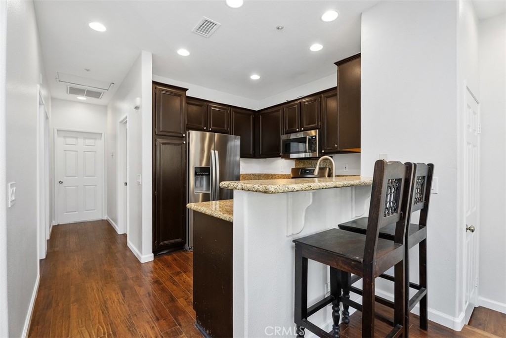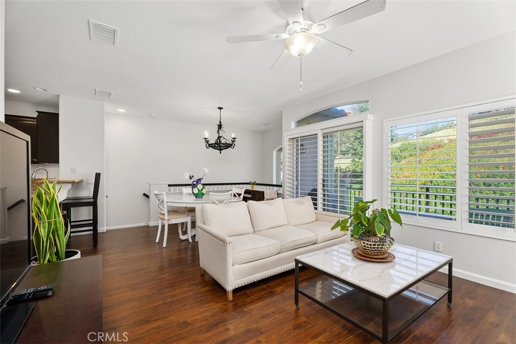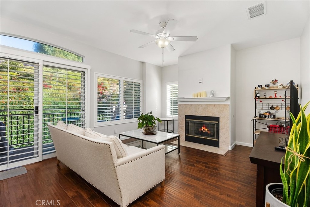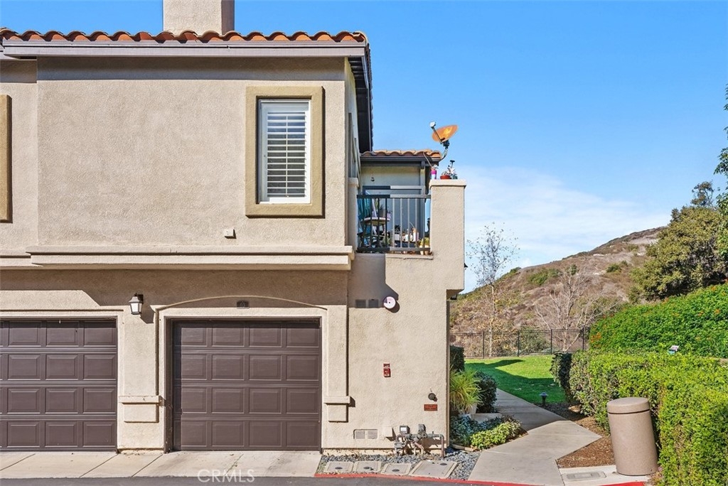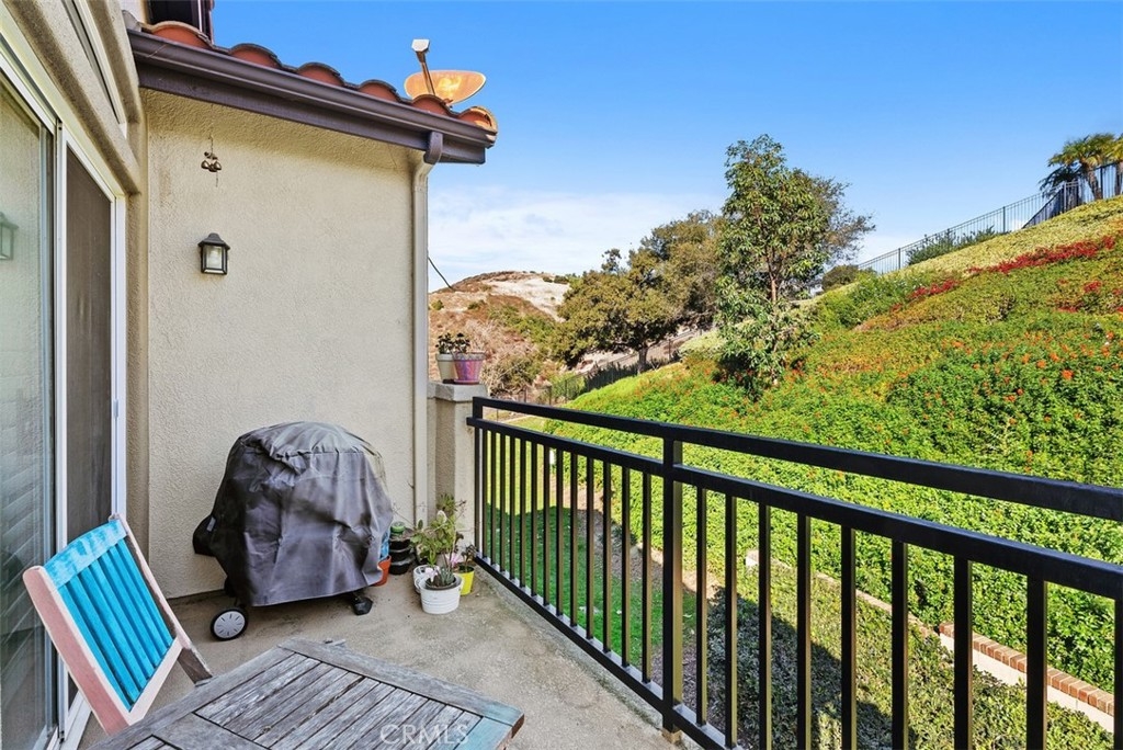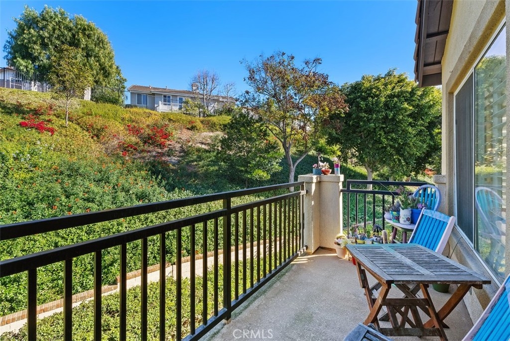 Location, Location, Location is what real estate is all about and this stunning Passeggio condo does not disappoint. Nestled next to the hills, this home provides the ultimate in privacy and peacefulness. No road noise and only steps from beautiful canyon views. As you enter this property you will be greeted by beautiful dark laminate wood floors throughout, Spanish tiles in the bathrooms and entry, gorgeous plantation shutters on the windows, an upgraded kitchen with stainless steel appliances and granite counters. This true 3-bedroom home has recessed lighting, ceiling fans, mirrored closet wardrobes, a primary bedroom with a large walk-in closet and a primary bathroom with upgraded mirrors and shower enclosure. This property has a 1 car attached garage plus an ideal reserved parking spot steps away from the unit. You have to see this home to truly appreciate it. As you stand in the living room or kitchen and look out the windows all you'll see is the green hills with no one looking into your home. It is the ultimate in seclusion and privacy. A balcony off the living room allows you to enjoy the fresh air, the views, and entertain guests. This property is conveniently located within a few miles of the Aliso Viejo Towne Center and within 15 minutes of Irvine, Newport Beach, Laguna Beach, or Dana Point. Come and see this wonderful home!