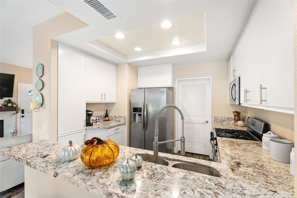 Welcome to your dream home in the prestigious Seagate Colony community. This highly upgraded two-story end unit offers both luxury and comfort in one of Aliso Viejo's most sought-after neighborhoods. As you step inside, you'll immediately notice the attention to detail and quality throughout. The heart of the home is the beautifully appointed kitchen, complete with granite countertops, a breakfast bar, and an abundance of storage space. Whether you're a gourmet chef or simply love to cook, this kitchen will inspire your culinary creativity. The waterproof luxury vinyl flooring throughout the home not only adds to the aesthetic appeal but also ensures durability and ease of maintenance. Gather around the upgraded fireplace in the living room, creating a cozy ambiance on cooler evenings. Another quality feature are the dual master suites with vaulted ceilings. Each suite is complete with its own upgraded private bathroom. The primary master suite features dual sinks with stylish finishes and a walk-in closet. In addition to the luxurious upgrades, this home has a newer HVAC system providing comfort throughout the year, and it’s been fully re-piped with PEX piping, ensuring peace of mind and reliability for years to come. Convenience is key with an inside laundry room and double-pane windows that provide energy efficiency and natural light. The thoughtfully upgraded light fixtures add a touch of elegance. The Seagate Colony community offers resort-style living with 2-pools, 2-spas, a clubhouse, and a private gym. It’s perfect for hosting gatherings or simply relaxing on sunny days. For your convenience, the property includes a detached 1-car garage and 1-assigned parking space located in front of the home. The HOA takes care of water and trash, making living here hassle-free. Don't miss this opportunity to own a truly exceptional home in the heart of Aliso Viejo.