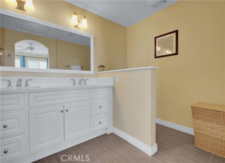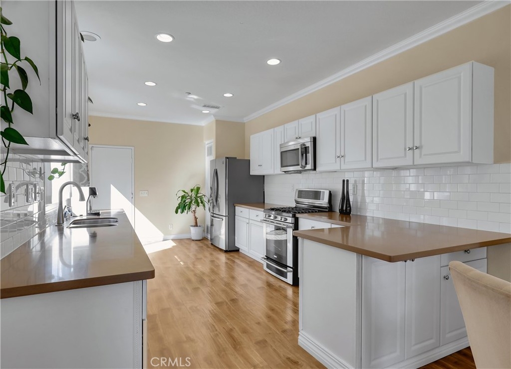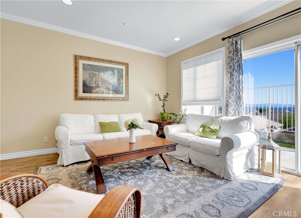 Beautifully updated home, ideally located in the desirable Orleans gated community and blessed with a prime location on a corner lot perched hilltop with a southern exposure, plus gorgeous city light and rolling hill views! The gated entrance and private walkway lead you to the front entrance and a sunny front patio. Step inside and soak in the light filled, open concept floor plan, sleek wood laminate floors, crown molding, framed windows and doors, recessed lighting, and gorgeous sit-down rolling hills views, all creating a perfect living environment. The living area, which is open to the dining area, boasts an enticing stacked stone fireplace with built-in bookcase, and sliding doors opening to the back patio providing an ideal indoor-outdoor living space. The spacious kitchen has been thoughtfully updated with Quartz countertops, gleaming subway tile backsplash, timeless white cabinetry, stainless steel appliances, and sliding doors opening to the front patio, a perfect space for morning coffee with loved ones. The main level includes a convenient updated powder room with gorgeous pedestal sink and framed vanity mirror. The spacious primary bedroom suite is a private retreat with crown molding, ceiling fan, recessed lighting, mirrored closet doors and breathtaking views of city lights and rolling hills. The primary ensuite bath has a beautifully updated Quart topped vanity, updated lighting, framed vanity mirror, updated hardware and faucets, a remodeled step-in shower, custom tile surround with glass tile accents, and frameless glass enclosure. The guest suite also includes crown molding, recessed lighting, mirrored closet doors, and a similarly updated ensuite bath creating a brilliant design flow throughout the home. Improvements include Pex Plumbing, 2018 updated Trane AC Unit, 2024 New Garage Door mechanism and 2025 new springs installed in the convenient direct access 2 car garage. You will fall in love with the private, sundrenched, wrap-around yard boasting two patio spaces with glass fencing and water conscious artificial turf providing an exclusive space for enjoying the amazing views and cool ocean breezes. Community amenities include gated entrance and community pool and spa surrounded by picturesque tropical landscaping. Short stroll to Acorn Park and Oak Grove Elementary. Walking distance of shopping, dining, theaters at Aliso Viejo Town Center, hiking and biking trails nearby, and just minutes from iconic beaches and Dana Point!