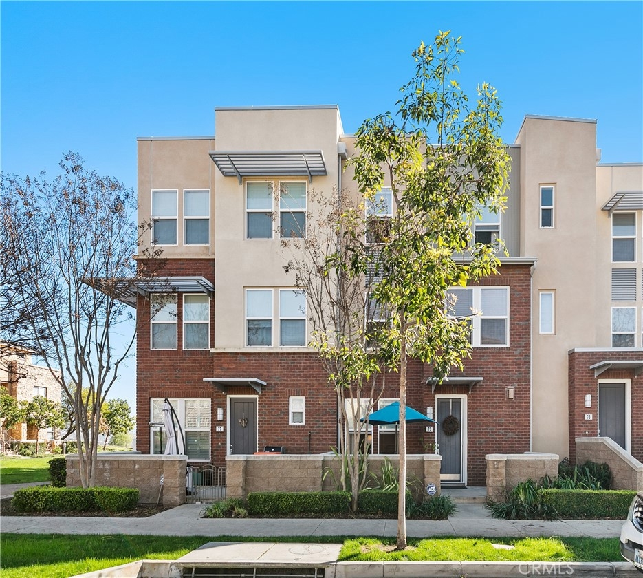 Bright and airy townhome located in the desirable Vantis Community of Aliso Viejo. This tastefully upgraded townhome boasts a 1,638 sq ft floorplan with 2 master suites, 2.5 bathrooms and an extra-long 2 car garage. Entering from the front porch you pass into the spacious ground floor living and dining room upgraded with custom media niche, gas burning fireplace, hardwood flooring, crystal chandelier, crown molding and wainscoting. The adjacent gourmet style kitchen is a chefs delight featuring abundant counter space and cabinet storage, stainless steel appliances, and designer granite and glass backsplash. The master suites are located on separate floors providing the utmost in privacy. Both masters feature large walk-in closets, dual vanity sinks, deep soaking tubs and separate glass enclosed showers. The large front porch is perfect for morning coffee or relaxing day end. The full sized walk-in laundry room has ample cabinet storage and is conveniently located on the second floor. As an added bonus this home is its located near relaxing greenbelt and guest parking is located just across from the entry. Community amenities include association pool and spa, private gym, outdoor fireplaces, and clubhouse. Conveniently located near the 73 Toll Way and a short walk to the Town Center with Edwards movie theater, shopping and a multitude of restaurants.