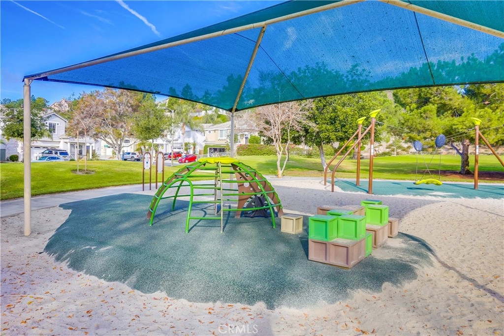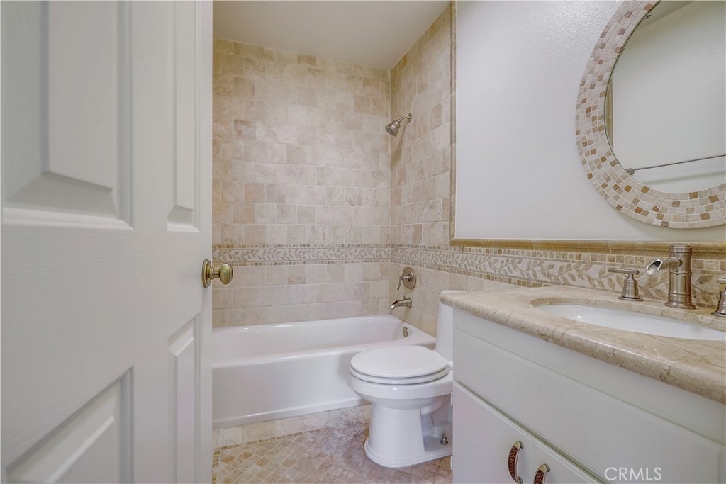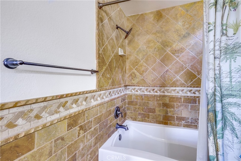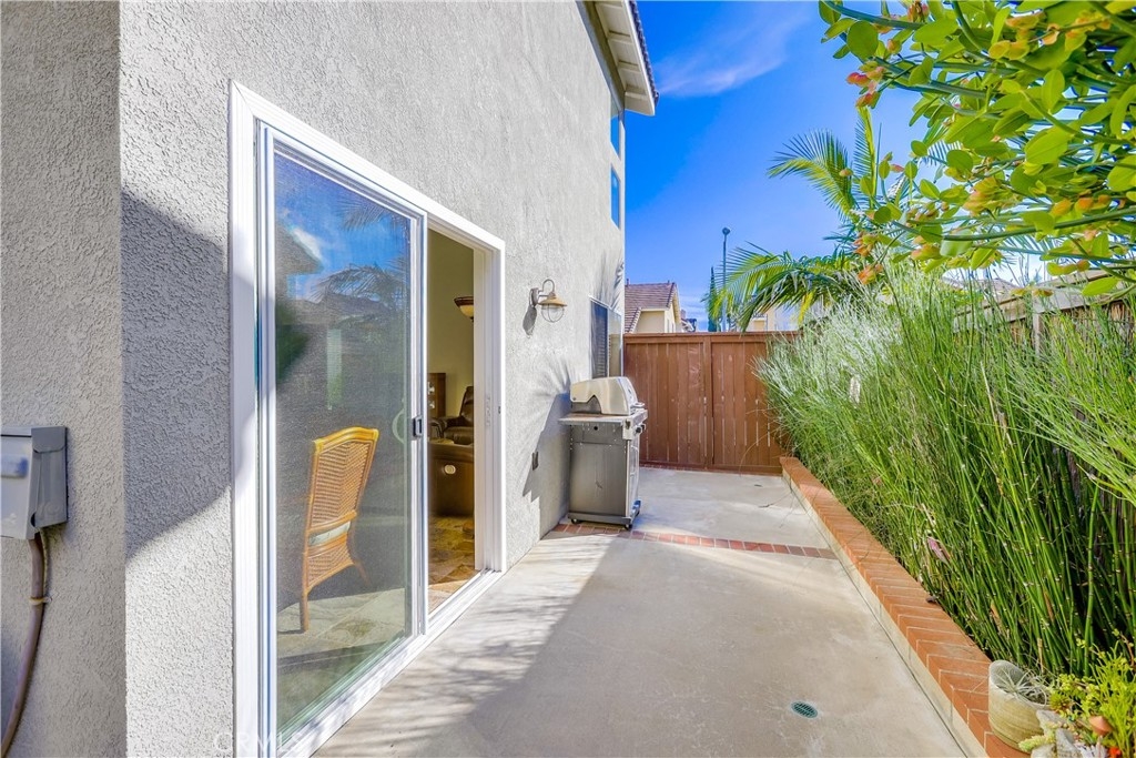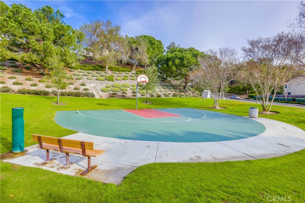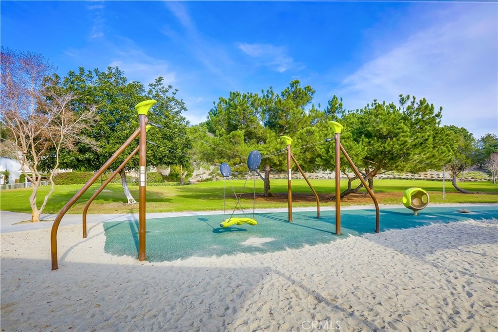 Sparkling gem with a prime corner lot location and recent improvements ideally located in the desirable Hamptons community within walking distance of local schools, parks, the Aliso Viejo Town Center. Step inside and soak in the soaring 2 story ceilings and the light filled interior spaces. Gorgeous stone tile floors, a freshly painted neutral interior, and an abundance of natural light set the stage for an ideal living environment. The well-designed open floor plan includes a spacious living area with a tile surround fireplace, built in shelving and a media nook, and is open to the dining area with direct access to the outdoor patio creating an ideal indoor-outdoor living space. The sunny kitchen boasts gorgeous granite countertops, a custom tile backsplash, and stainless-steel appliances. The convenient main level powder room has been beautifully upgraded with a custom granite topped vanity and custom lighting. The upstairs primary bedroom suite is a private retreat with custom ceiling fan, a large walk-in closet, and a beautiful primary bath with granite countertop, custom tile floor and backsplash, dual vanities, and a gorgeous tub/shower with a fully tiled surround and custom tile details. The guest bedroom is blessed with new carpet, new mirrored closet doors, and a full private bath with elegant custom tile features, a granite topped vanity with upgraded fixtures and hardware, and a framed vanity mirror. Additional fine features and improvements include upgraded baseboards and door casings throughout, updated tubs and toilets, upgraded wood flooring on stairs and loft area, new switches and plugs throughout, new recessed can lighting, new ceiling fans, new patio sliding door, new bedroom doors, new screens, upgraded water heater, new epoxy garage floors, upgraded garage door and opener, and garage ceiling storage racks. The outdoor patio is a peaceful oasis with easy care hardscape, brick planters, and colorful landscaping creating a wonderful space for relaxing, BBQing, and entertaining friends and family. The well-maintained community amenities include a tot lot playground, Free Little Library, and a sparkling community pool and spa, with picnic areas, covered cabanas, an outdoor cooking area, and seasonal community events. Just a short stroll to Oak Park, Canyon Vista Elementary, Soka University, Ice Palace, Library, Aliso Viejo Town Center, Theater, dining, shopping, and an abundance of hiking and biking in the hills and canyons close by.
