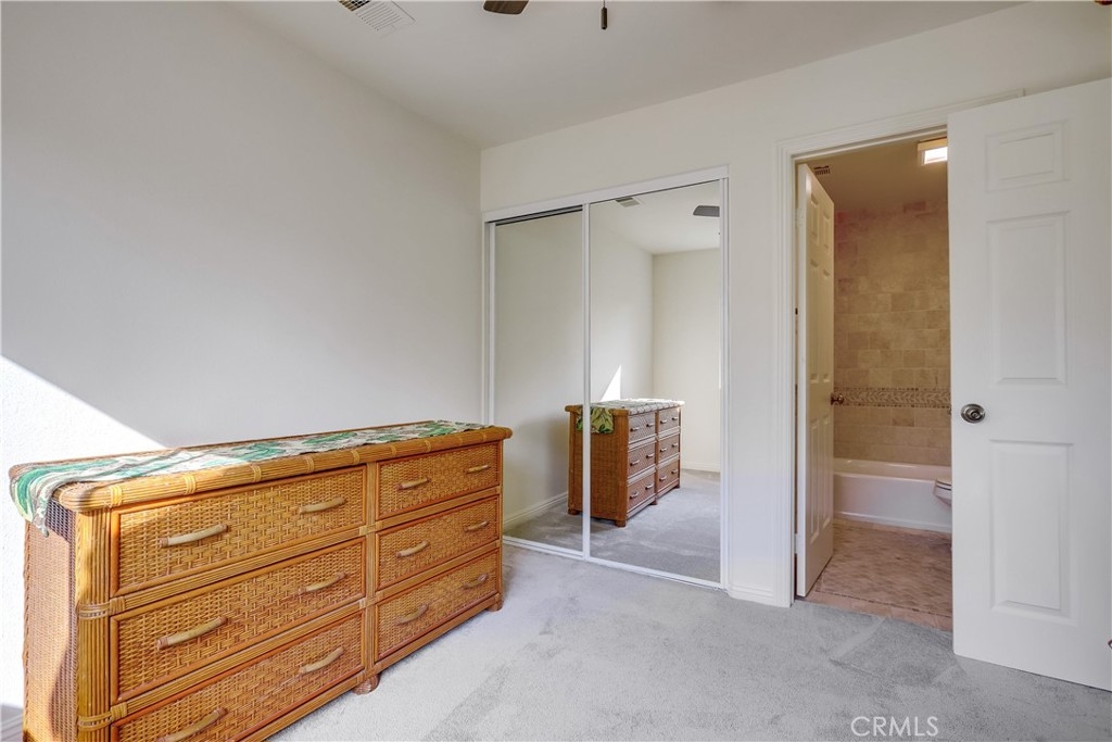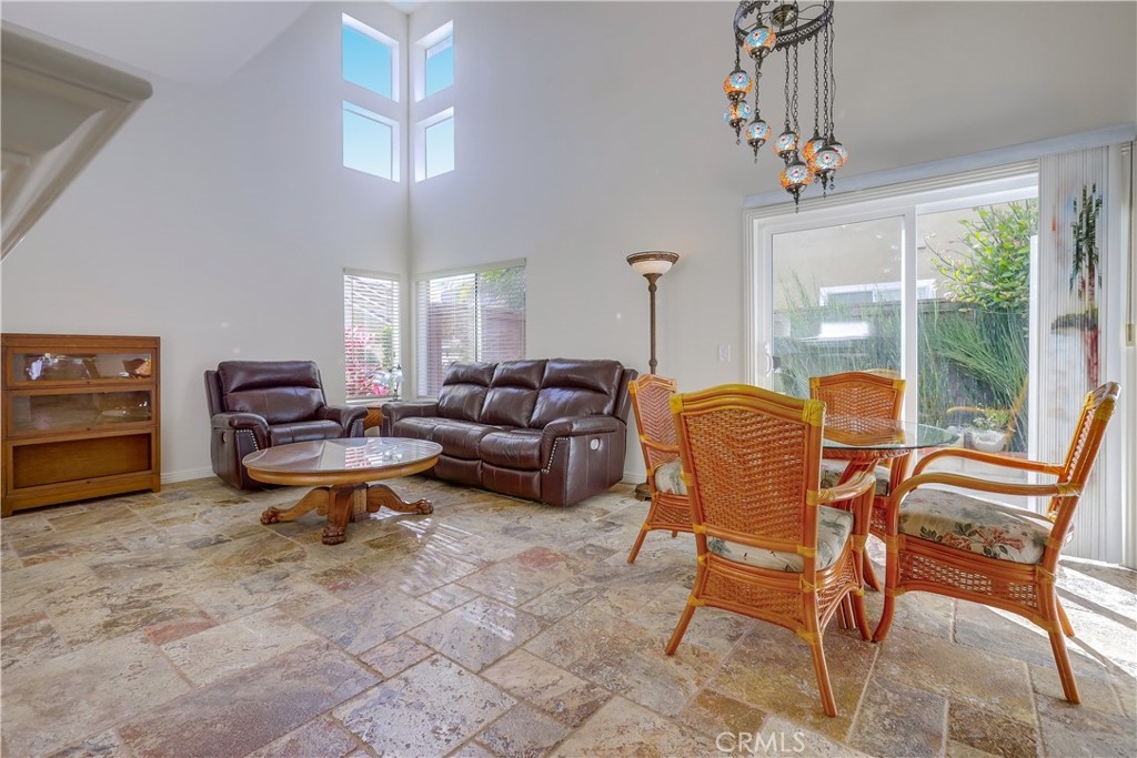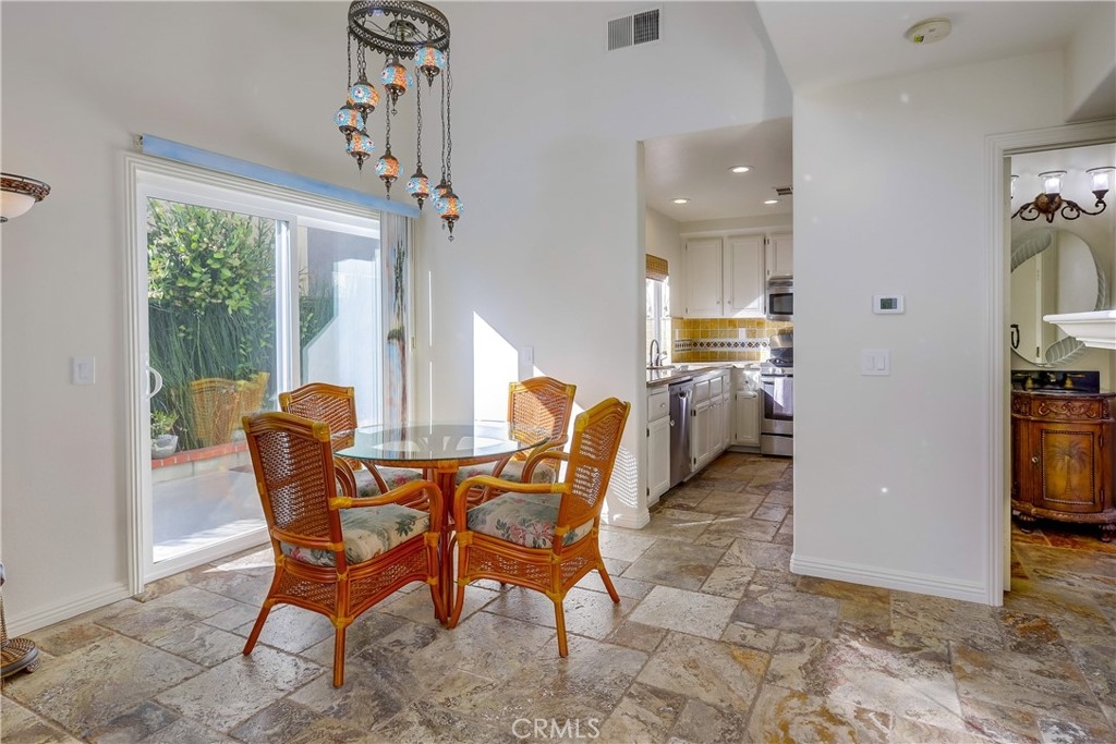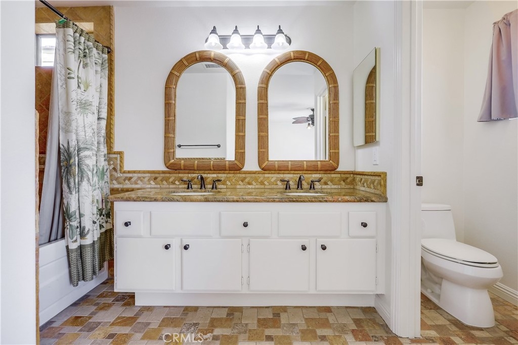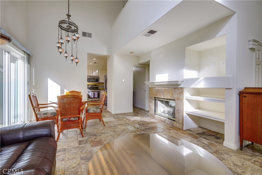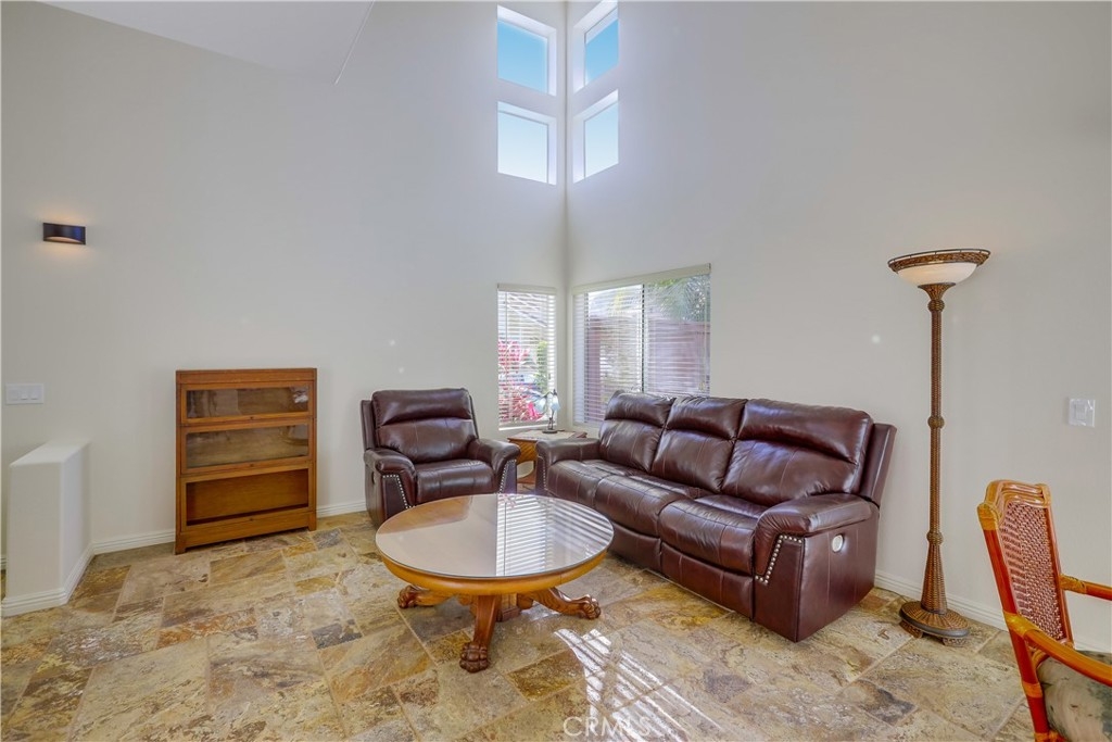 Sparkling gem with a prime corner lot location and recent improvements ideally located in the desirable Hamptons community within walking distance of local schools, parks, the Aliso Viejo Town Center. Step inside and soak in the soaring 2 story ceilings and the light filled interior spaces. Gorgeous stone tile floors, a freshly painted neutral interior, and an abundance of natural light set the stage for an ideal living environment. The well-designed open floor plan includes a spacious living area with a tile surround fireplace, built in shelving and a media nook, and is open to the dining area with direct access to the outdoor patio creating an ideal indoor-outdoor living space. The sunny kitchen boasts gorgeous granite countertops, a custom tile backsplash, and stainless-steel appliances. The convenient main level powder room has been beautifully upgraded with a custom granite topped vanity and custom lighting. The upstairs primary bedroom suite is a private retreat with custom ceiling fan, a large walk-in closet, and a beautiful primary bath with granite countertop, custom tile floor and backsplash, dual vanities, and a gorgeous tub/shower with a fully tiled surround and custom tile details. The guest bedroom is blessed with new carpet, new mirrored closet doors, and a full private bath with elegant custom tile features, a granite topped vanity with upgraded fixtures and hardware, and a framed vanity mirror. Additional fine features and improvements include upgraded baseboards and door casings throughout, updated tubs and toilets, upgraded wood flooring on stairs and loft area, new switches and plugs throughout, new recessed can lighting, new ceiling fans, new patio sliding door, new bedroom doors, new screens, upgraded water heater, new epoxy garage floors, upgraded garage door and opener, and garage ceiling storage racks. The outdoor patio is a peaceful oasis with easy care hardscape, brick planters, and colorful landscaping creating a wonderful space for relaxing, BBQing, and entertaining friends and family. The well-maintained community amenities include a tot lot playground, Free Little Library, and a sparkling community pool and spa, with picnic areas, covered cabanas, an outdoor cooking area, and seasonal community events. Just a short stroll to Oak Park, Canyon Vista Elementary, Soka University, Ice Palace, Library, Aliso Viejo Town Center, Theater, dining, shopping, and an abundance of hiking and biking in the hills and canyons close by.