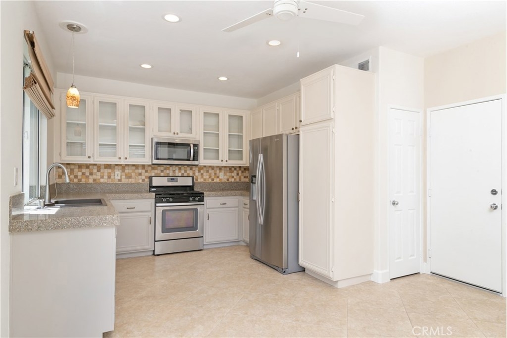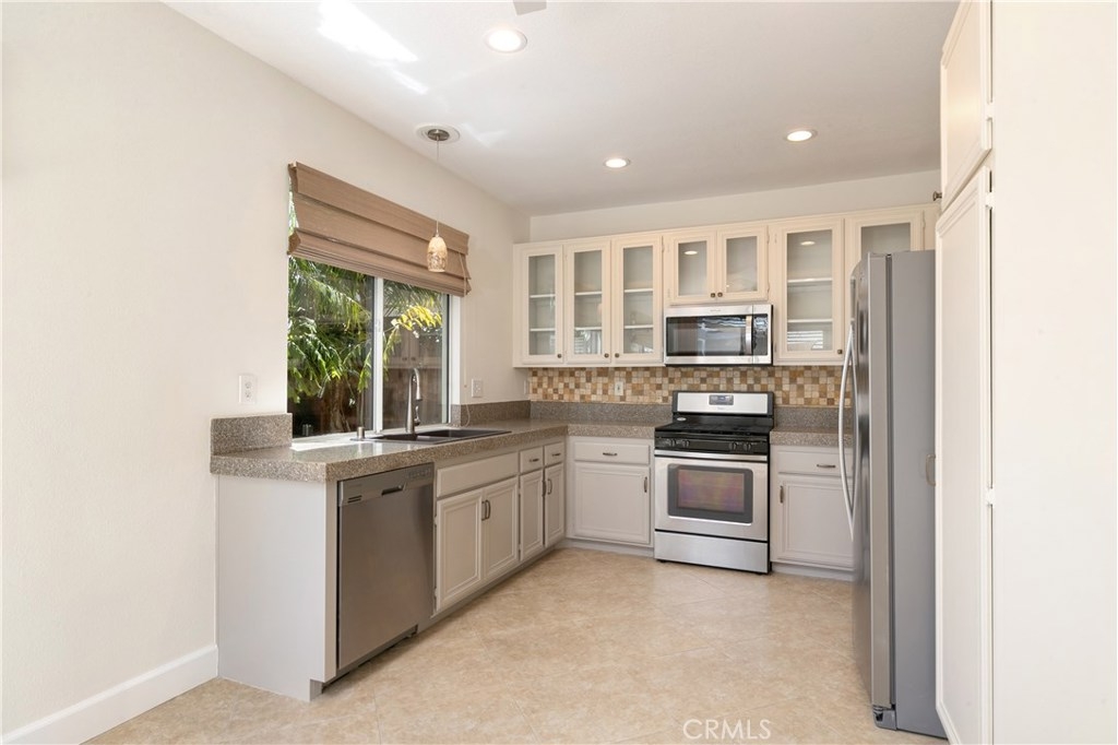 Gorgeous Detached Home with City Lights & Mountain Views and Cul-de-Sac Location in the Prestigious Gated Community of San Simeon within Walking Distance to Award Winning Schools. Open Floor Plan with Tile Flooring throughout downstairs area, Newer A/C System, Attic Fan, and Fresh Designer Paint throughout the home. Living Room features High Ceiling, Stone Accented Fireplace, and Adjustable Recessed Spotlights. Kitchen with Stainless Steel Appliances, Upgraded Countertop, Sink & Faucet, and Recessed LED Lighting. Dining Area with Ceiling Fan and Large Sliding Glass Door leads to a Spacious Private Garden Oasis with Planters, Covered Patio Area, and Large Side Yard. The Second Story features 3 Bedrooms and Hallway with Linen Cabinets and Recessed LED Lighting, and New Luxury Wide Plank Vinyl Flooring throughout. Master suite with City Lights & Mountain Views, Vaulted Ceiling, and Ceiling Fan. Master Bathroom featuring Double Sink Vanity, Upgraded Fixtures, and Walk-in Closet with Built-in Shelves. Two Car Attached Garage with Overhead Storage Racks, Numerous Storage Cabinets, Fresh Paint, and Full Driveway. Very Low HOA Dues, NO Mello-Roos, and Low Taxes. Excellent proximity to Parks, Aliso Viejo Town Center with Shops, Restaurants and Movie Theaters, Aliso Viejo Aquatic Center, Jack Nicklaus-Designed Golf Course, and Hiking/Biking Trails. Easy Access to 73 toll road and Beach via 133.