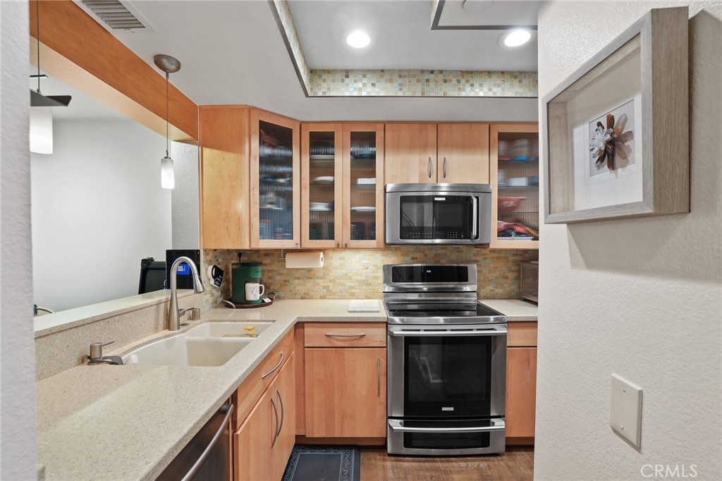 This beautifully upgraded move-in ready single family attached home is located in the highly sought after City of Aliso Viejo, in the quiet community of Morningside. Home offers a range of desirable features that make it an excellent choice. The house has undergone a complete remodel, making it light, bright, and visually appealing. The kitchen is particularly stunning, featuring high-end cabinets, select granite countertops, and stainless-steel appliances. The open layout connects the kitchen seamlessly with the dining area and living room, providing a spacious and cohesive living space. From the living room, you'll have a view of the private enclosed patio, offering an extended serene outdoor area for relaxation or entertaining guests. The home also boasts energy-efficient dual pane windows throughout, which help with insulation and noise reduction. Additionally, it has recessed lighting, ceiling fans, and high-end laminate floors downstairs plus convenient indoor laundry adding to the overall ambiance and functionality of the space. Upstairs, you'll find newer plush carpeting, creating a cozy and comfortable atmosphere. The primary bedroom is spacious and features high ceilings, a built-in closet system, a cozy balcony, and direct access to the bathroom. The second bedroom also includes a built-in closet and mirrored wardrobe, providing ample storage space. Outside, the spacious private patio offers additional storage space with a storage closet and is enclosed by vinyl fencing, for privacy. It also offers two parking spots, for convenient parking for residents and their guests. The property's location is another attractive aspect, being close to the beach. Aliso Viejo is known for its proximity to coastal areas, providing residents with the opportunity to enjoy the beach lifestyle. Additionally, the renowned Laguna Beach is just a short distance away, offering residents the chance to explore its beautiful coastline and vibrant arts scene. The community amenities offered by the homeowners' association include a sparkling pool, spa, BBQ area, and open green space. This home is conveniently situated near the 73 Toll Road and local highways, making commuting and traveling around the area easier. You'll also have access to nearby shopping centers, restaurants, and great schools.