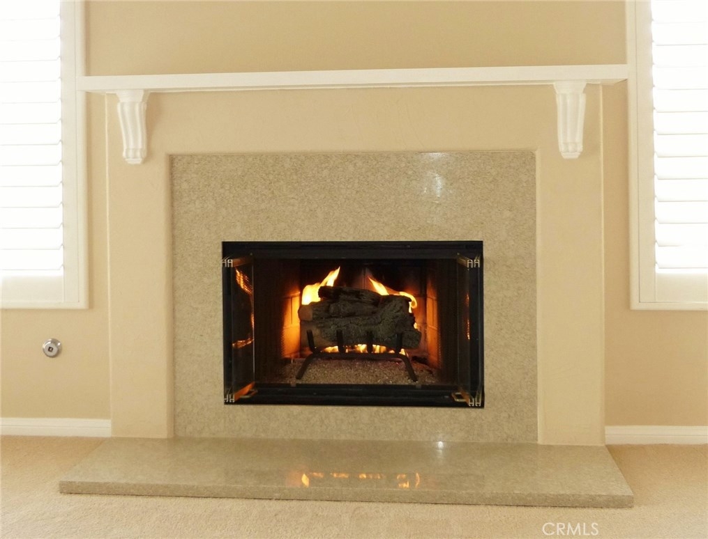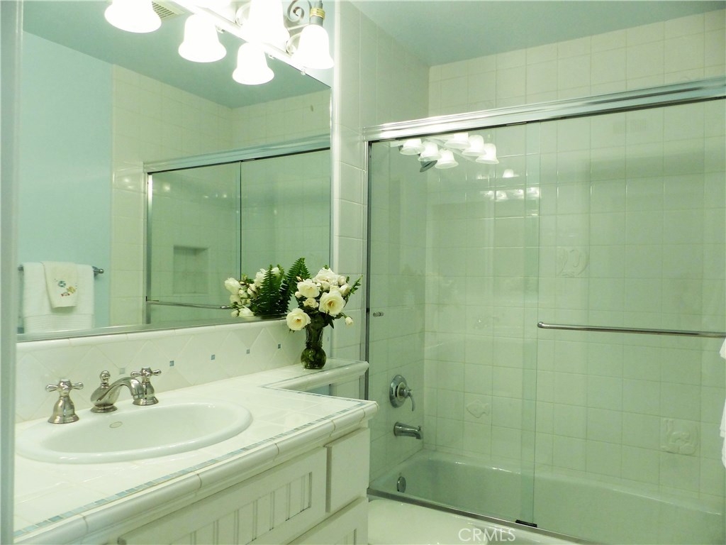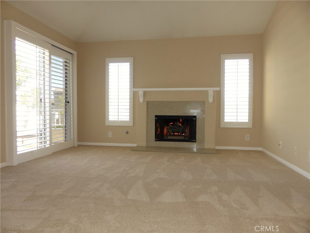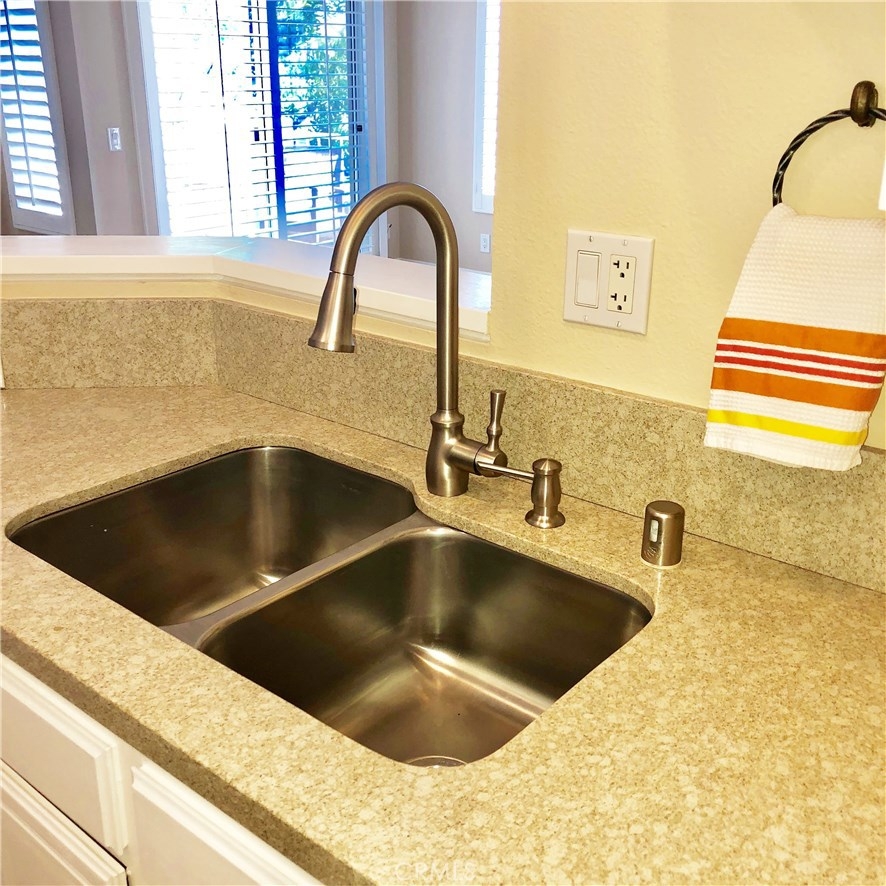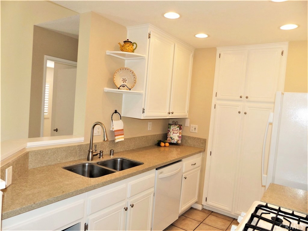 PRICE REDUCED FOR FAST SALE! Newly updated private end unit Villa in a small hillside community nestled between two great parks! The spacious entry foyer with privacy “Rain Glass” welcomes you to this open floor plan with lots of light and vaulted ceilings. The fireplace with new quartz face, hearth and custom mantle are a focal point for the spacious living room with high ceilings. Adding to the ambiance are beautiful Plantation Shutters throughout, as well as fresh paint and new plush carpet. The dining area is well served by the open kitchen which overlooks the living room and features new quartz counters, stainless steel sink, matching faucet plus a 5 burner range, convection oven and an included refrigerator. The hall bath features a raised vanity sink with inlaid tile, solid tub, tile walls and glass enclosure. The master suite offers 2 large double mirrored door closets, custom shelving system, high ceiling & fan. The master bath features a custom tiled shower, glass doors and raised dual vanity sinks. The bedrooms and balcony offer a nice view too! Your Villa comes with a reserved parking space plus a one car direct access garage, cabinets along with a washer and dryer. Close to 2 incredible panoramic valley and mountain view parks, Aliso Creek Bike Trail, A.V. Middle School, Town Center entertainment & shopping. The HOA repiped with PEX, recently painted exteriors and new garage doors! Low Taxes and No Mello - Roos Assessments. Move In Ready!