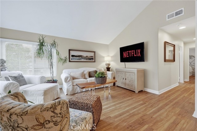 Just minutes (approx. 5 miles) from the beach, this beautifully upgraded 2-bedroom, 2-bath upper-level corner condo in Seacove Place offers the perfect blend of privacy and coastal living, with no neighbors above or below. Step inside to an open, naturally bright layout featuring vaulted ceilings, dual-pane windows, new luxury vinyl flooring, new ducting and insulation for added comfort and efficiency. The living area extends to a private balcony with peaceful neighborhood views—an ideal spot to relax and unwind. The updated kitchen is equally inviting with granite counters, stainless steel appliances, and a convenient pantry. The primary suite offers a calming retreat with vaulted ceilings, a walk-in closet, and an en-suite bath complete with dual sinks and a soaking tub. Additional highlights include in-unit laundry, an attached 1-car garage with direct access, and a reserved parking space. The HOA covers water and trash and provides access to a sparkling pool and spa, greenbelts, picnic areas plus dog-friendly paths. Close to Irvine Spectrum, parks, scenic trails, top-rated schools, and the breathtaking Laguna Beach coastline, this move-in-ready home truly combines comfort, style, and an unbeatable location. Turnkey and ready for its next owner—come see this lovely home today!